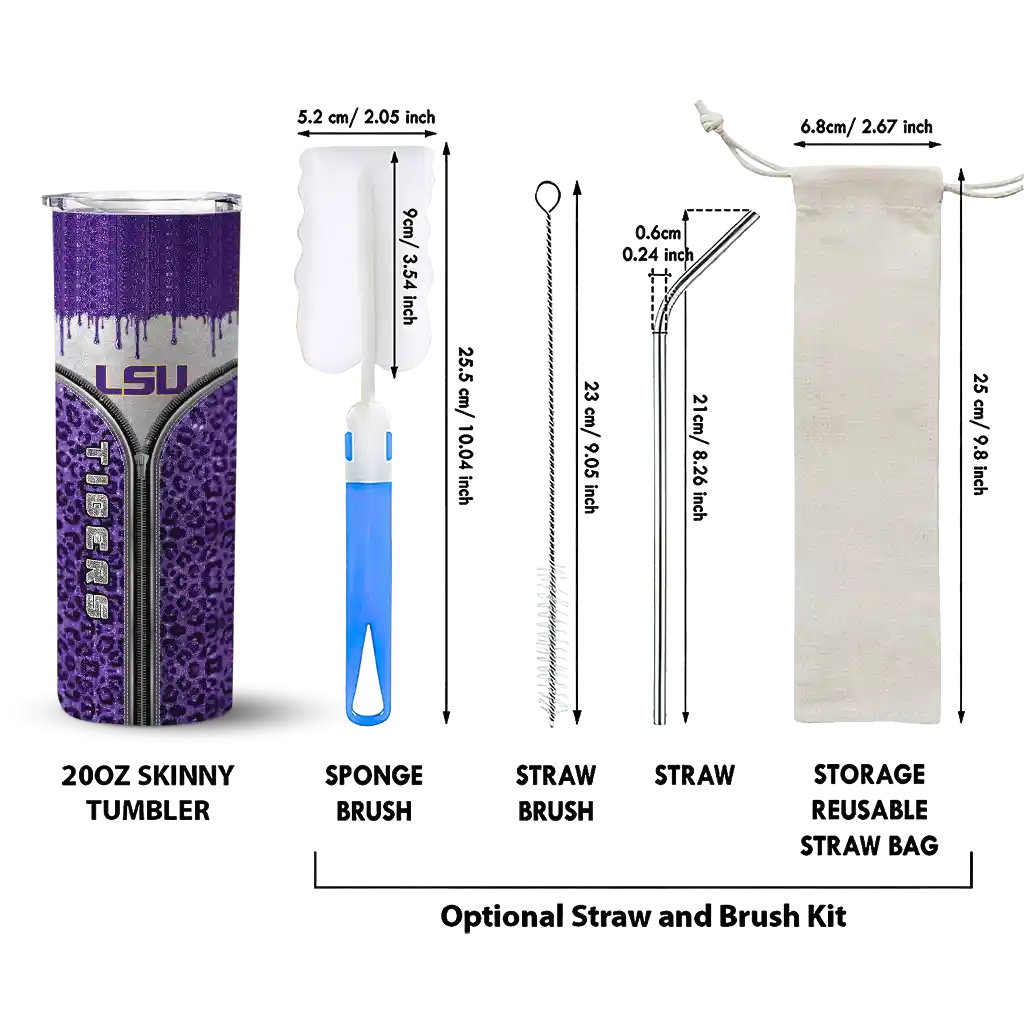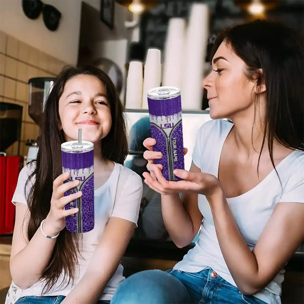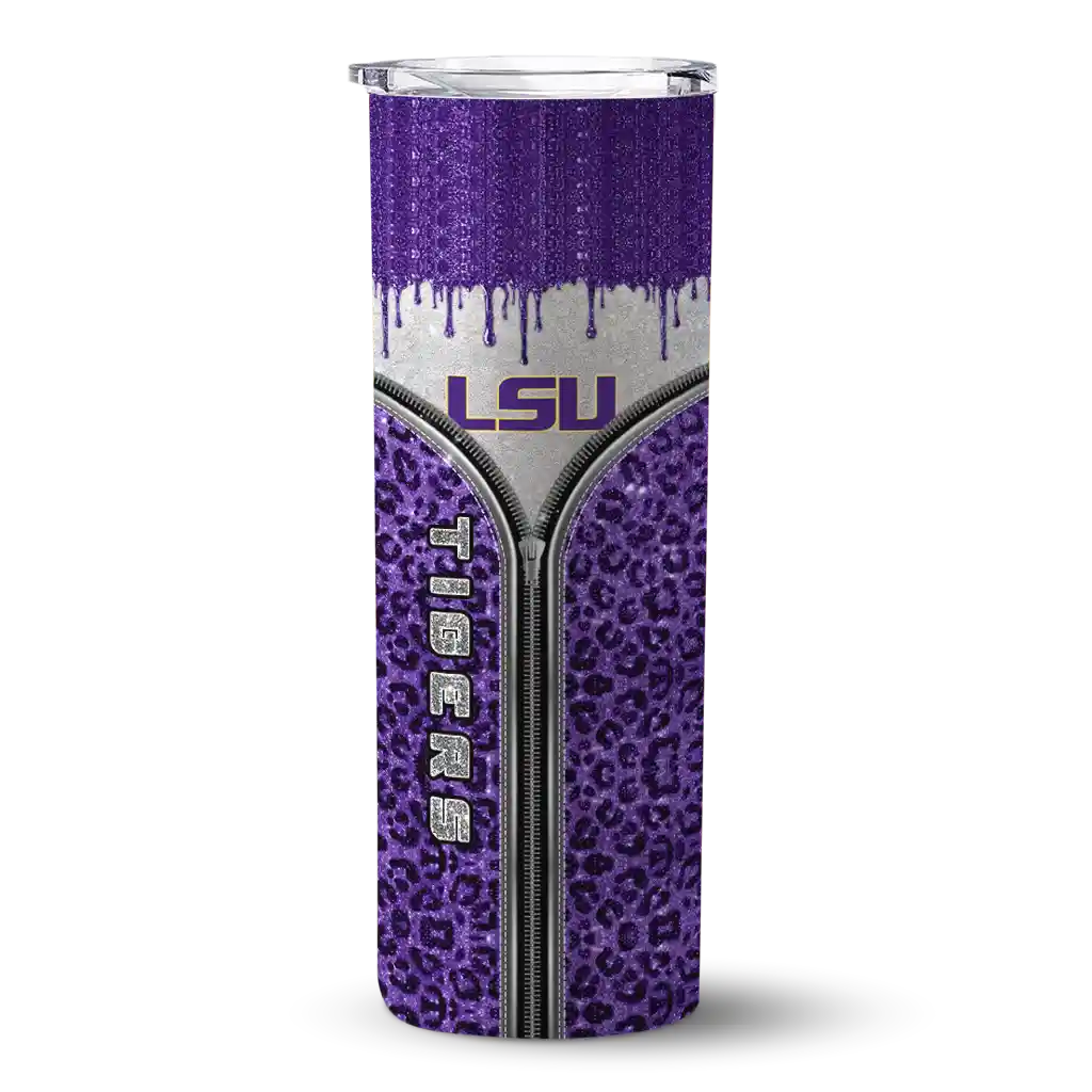 No question about it—the Customized LSU Tigers Leopard Zipper Purple Curved Tumbler is the ultimate way to stay refreshed while rocking your LSU Tigers pride. From the stadium to your tailgate, or just chilling at home, this sleek tumbler makes sure you stay hydrated in style. What’s in the box? A stainless steel tumbler, clear lid, and removable straw—all the essentials for keeping your favorite drinks on point!