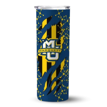 The Custom Marquette Golden Eagles Metallic Grid Blue Skinny Tumbler tumbler is the perfect way to stay refreshed while showing off your pride for Marquette Golden Eagles. With its double-wall insulation, your drinks stay at the right temperature for hours, whether you're enjoying a hot coffee or keeping your iced drink cold. What's inside? You’ll find 1 stainless steel tumbler, 1 clear lid, and 1 removable straw. It's the perfect blend of function and fan spirit! Ergonomically designed for comfort, made from durable stainless steel, and insulated to maintain your drink’s temperature, this tumbler is a must-have for any dedicated NCAA fan.