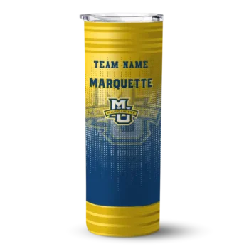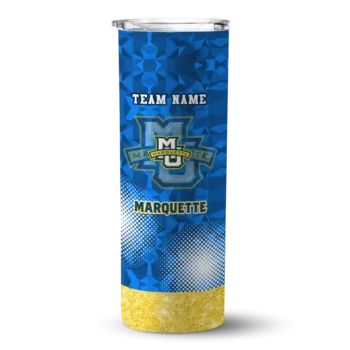 The Custom Marquette Golden Eagles Swirl Texture Blue Skinny Tumbler tumbler is the perfect way to stay refreshed while showing off your pride for Marquette Golden Eagles. With its double-wall insulation, your drinks stay at the right temperature for hours, whether you're enjoying a hot coffee or keeping your iced drink cold. What's inside? You’ll find 1 stainless steel tumbler, 1 clear lid, and 1 removable straw. It's the perfect blend of function and fan spirit! Ergonomically designed for comfort, made from durable stainless steel, and insulated to maintain your drink’s temperature, this tumbler is a must-have for any dedicated NCAA fan.