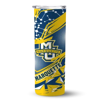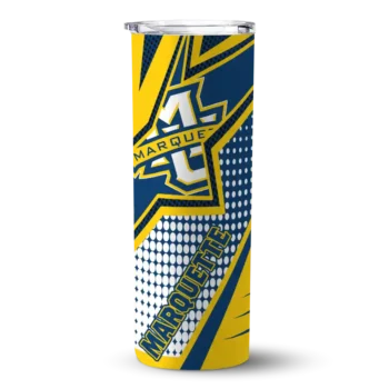 The Customized Marquette Golden Eagles Starburst Tiles Blue Skinny Tumbler tumbler is the perfect way to stay refreshed while showing off your pride for Marquette Golden Eagles. With its double-wall insulation, your drinks stay at the right temperature for hours, whether you're enjoying a hot coffee or keeping your iced drink cold. What's inside? You’ll find 1 stainless steel tumbler, 1 clear lid, and 1 removable straw. It's the perfect blend of function and fan spirit! Ergonomically designed for comfort, made from durable stainless steel, and insulated to maintain your drink’s temperature, this tumbler is a must-have for any dedicated NCAA fan.