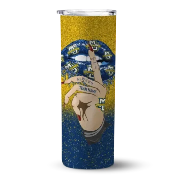 Personalized Marquette Golden Eagles Sparkle Lips Blue Skinny Tumbler $28.99