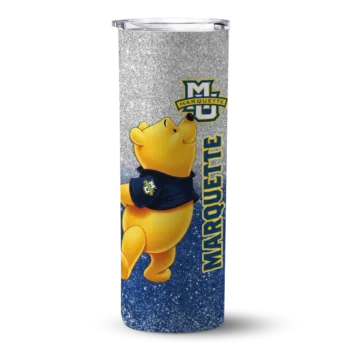 Personalized Marquette Golden Eagles Winnie the Pooh Blue Gray Skinny Tumbler $28.99