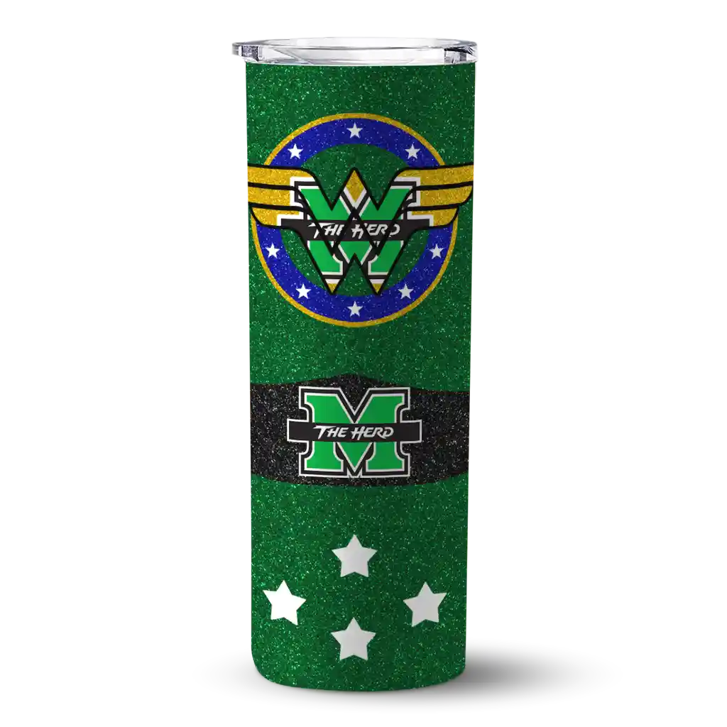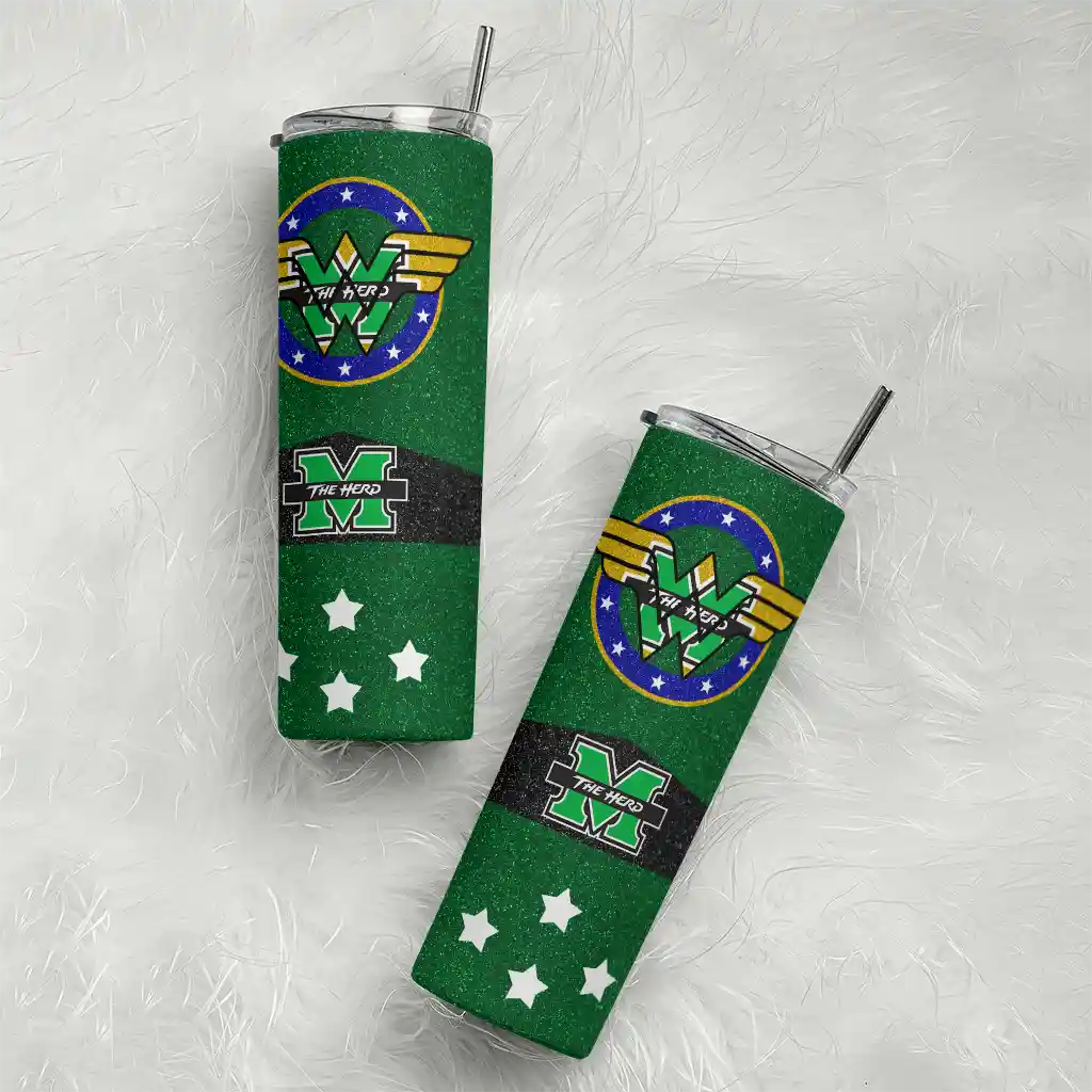 The Custom Marshall Thundering Herd Star Cluster Green Skinny Tumbler tumbler is the perfect way to stay refreshed while showing off your pride for Marshall Thundering Herd. With its double-wall insulation, your drinks stay at the right temperature for hours, whether you're enjoying a hot coffee or keeping your iced drink cold. What's inside? You’ll find 1 stainless steel tumbler, 1 clear lid, and 1 removable straw. It's the perfect blend of function and fan spirit! Ergonomically designed for comfort, made from durable stainless steel, and insulated to maintain your drink’s temperature, this tumbler is a must-have for any dedicated NCAA fan.