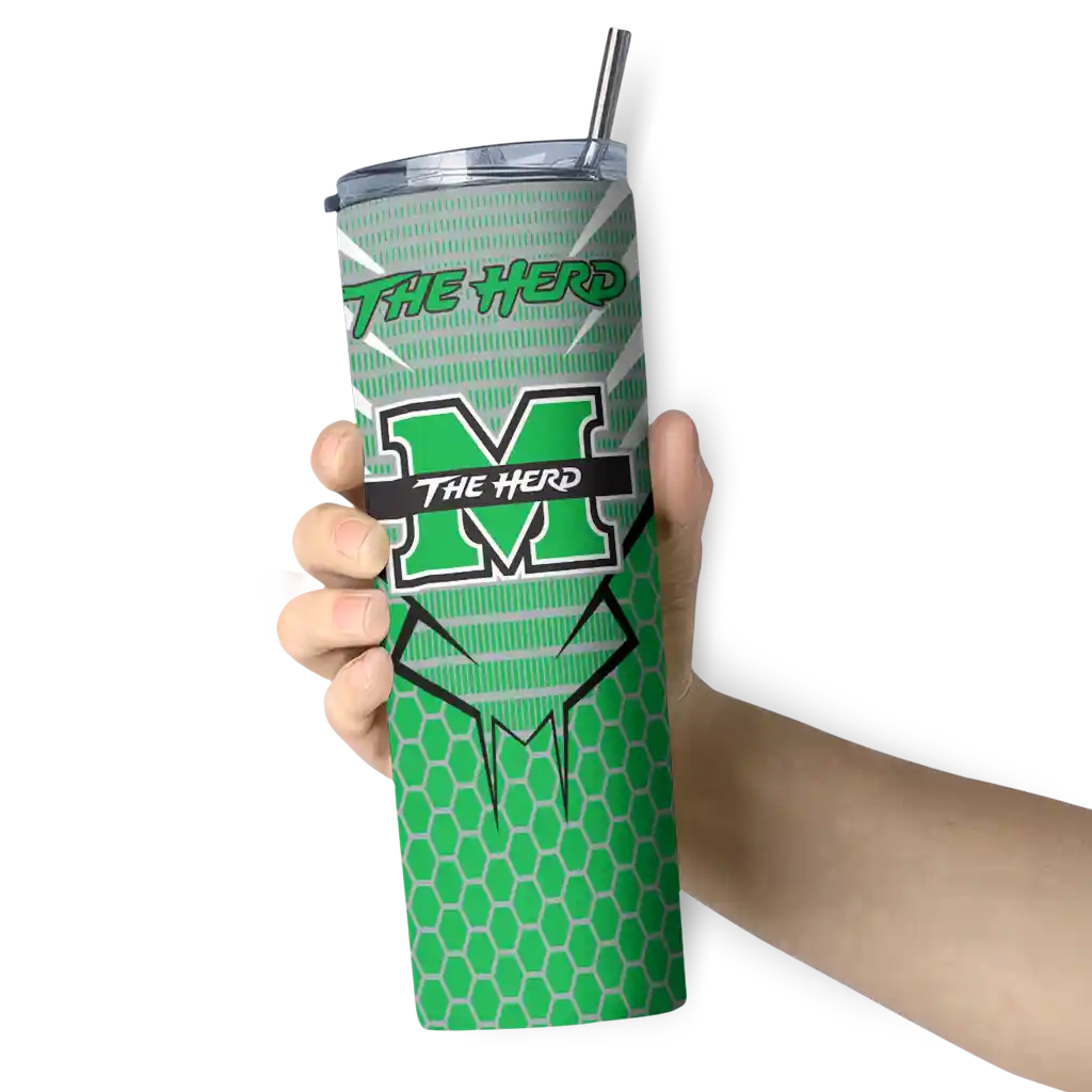 Introducing the Marshall Thundering Herd Tumblers  from NCAA Fan Pro —where fan pride meets practical design. This slim tumbler is created for NCAA fans who want their drinks at the perfect temperature while displaying their school pride. The double-wall insulation ensures your hot beverages stay warm and your cold drinks stay chilled for hours, so you can enjoy your drinks at their best, whether you're at a game, tailgate, or on the go.
