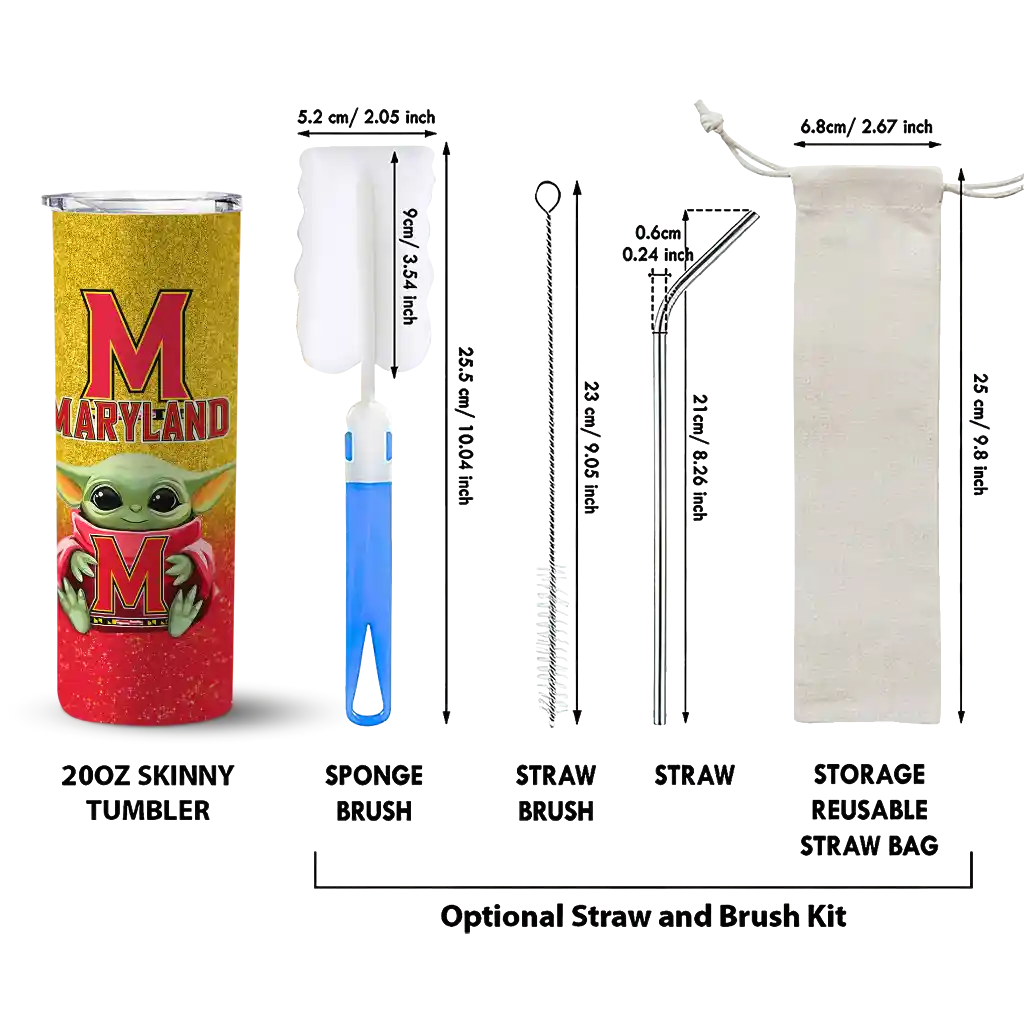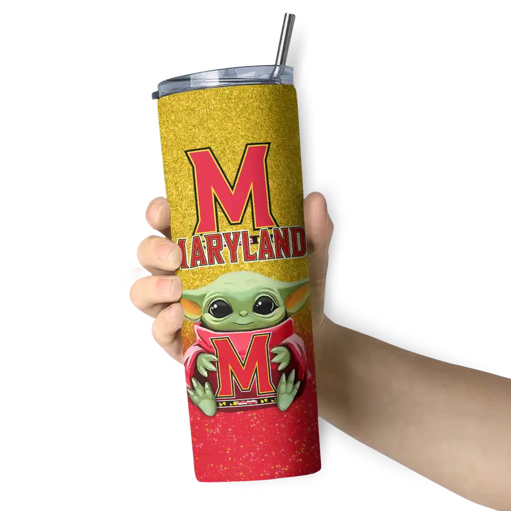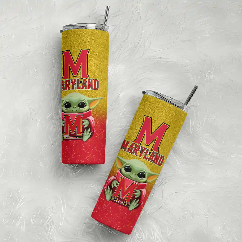 The Maryland Terrapins Yoda Smile Red Skinny Tumbler tumbler is the perfect way to stay refreshed while showing off your pride for Maryland Terrapins. With its double-wall insulation, your drinks stay at the right temperature for hours, whether you're enjoying a hot coffee or keeping your iced drink cold. What's inside? You’ll find 1 stainless steel tumbler, 1 clear lid, and 1 removable straw. It's the perfect blend of function and fan spirit! Ergonomically designed for comfort, made from durable stainless steel, and insulated to maintain your drink’s temperature, this tumbler is a must-have for any dedicated NCAA fan.