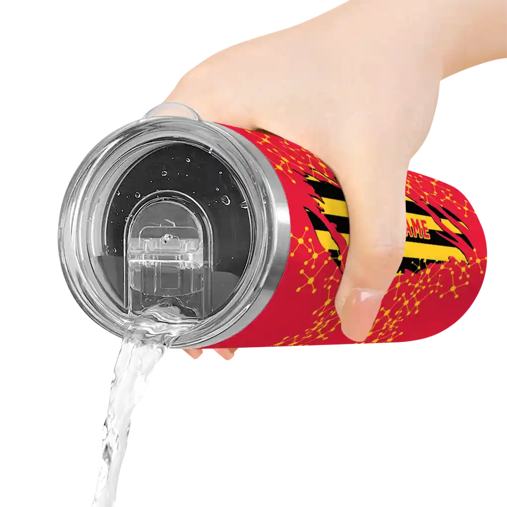 The Personalized Maryland Terrapins Swirl Texture Red Skinny Tumbler tumbler is the perfect way to stay refreshed while showing off your pride for Maryland Terrapins. With its double-wall insulation, your drinks stay at the right temperature for hours, whether you're enjoying a hot coffee or keeping your iced drink cold. What's inside? You’ll find 1 stainless steel tumbler, 1 clear lid, and 1 removable straw. It's the perfect blend of function and fan spirit! Ergonomically designed for comfort, made from durable stainless steel, and insulated to maintain your drink’s temperature, this tumbler is a must-have for any dedicated NCAA fan.