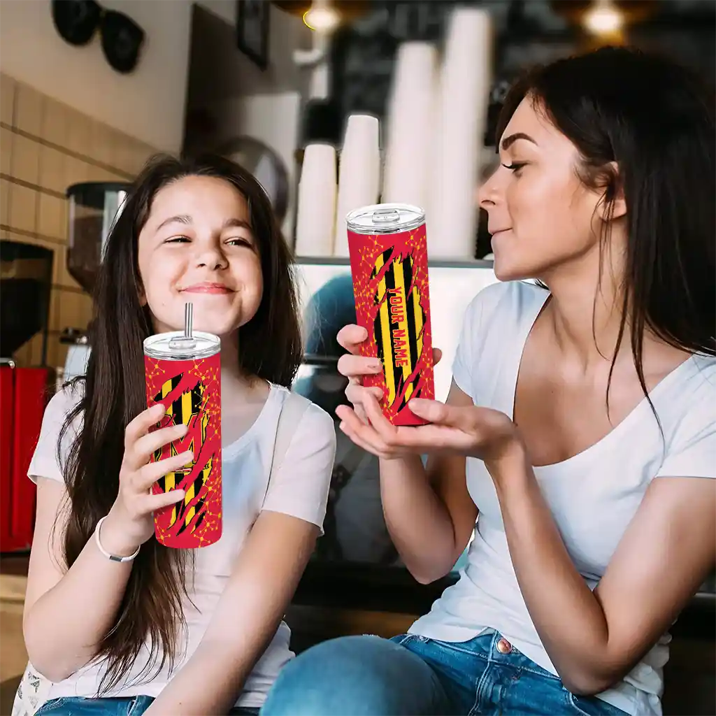 The Personalized Maryland Terrapins Star Pop Red Black Skinny Tumbler tumbler is the perfect way to stay refreshed while showing off your pride for Maryland Terrapins. With its double-wall insulation, your drinks stay at the right temperature for hours, whether you're enjoying a hot coffee or keeping your iced drink cold. What's inside? You’ll find 1 stainless steel tumbler, 1 clear lid, and 1 removable straw. It's the perfect blend of function and fan spirit! Ergonomically designed for comfort, made from durable stainless steel, and insulated to maintain your drink’s temperature, this tumbler is a must-have for any dedicated NCAA fan.