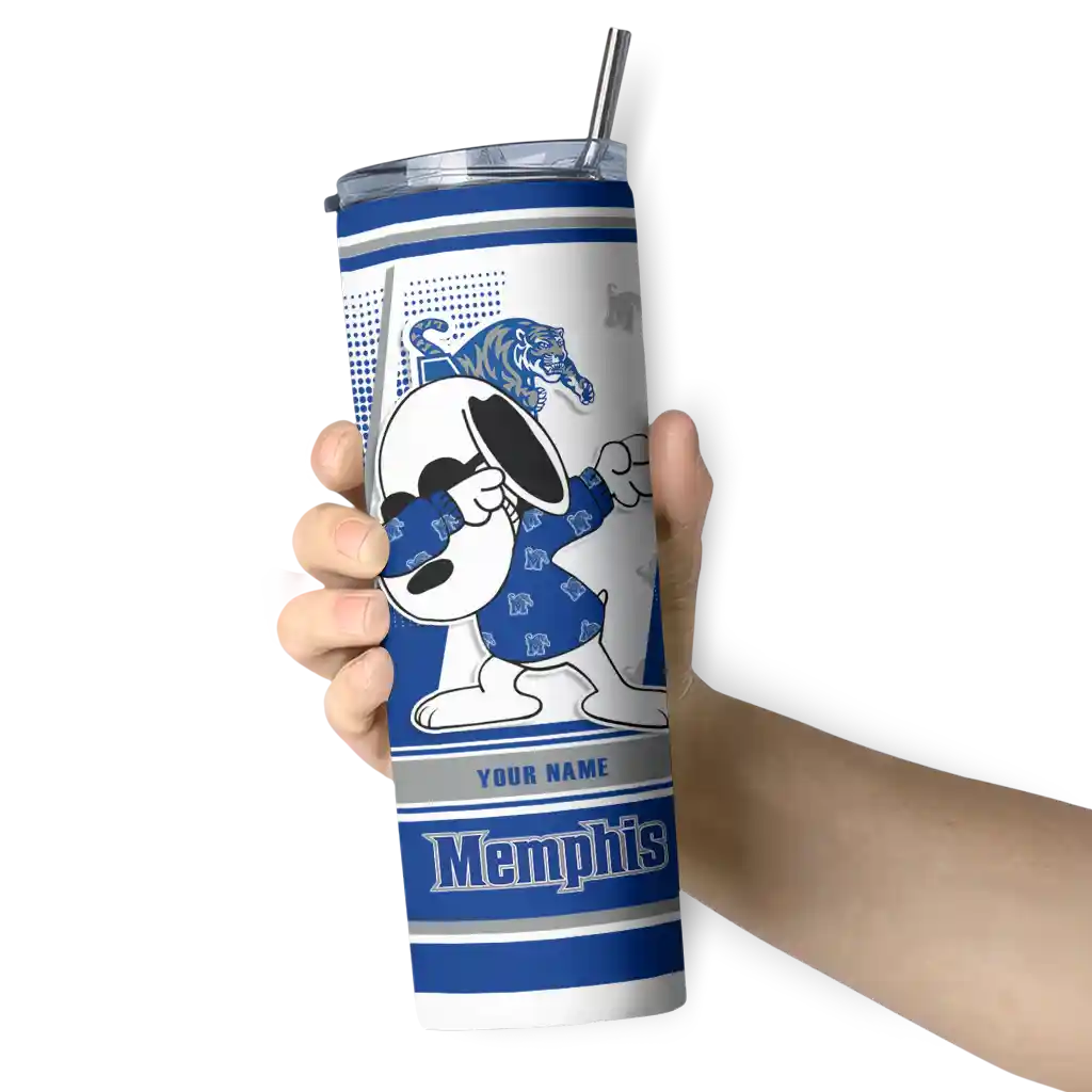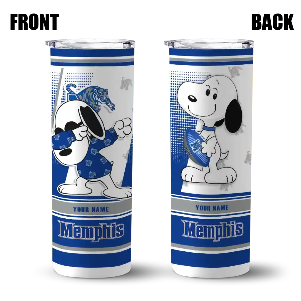 Custom Memphis Tigers Snoopy Dog Blue White Skinny Tumbler