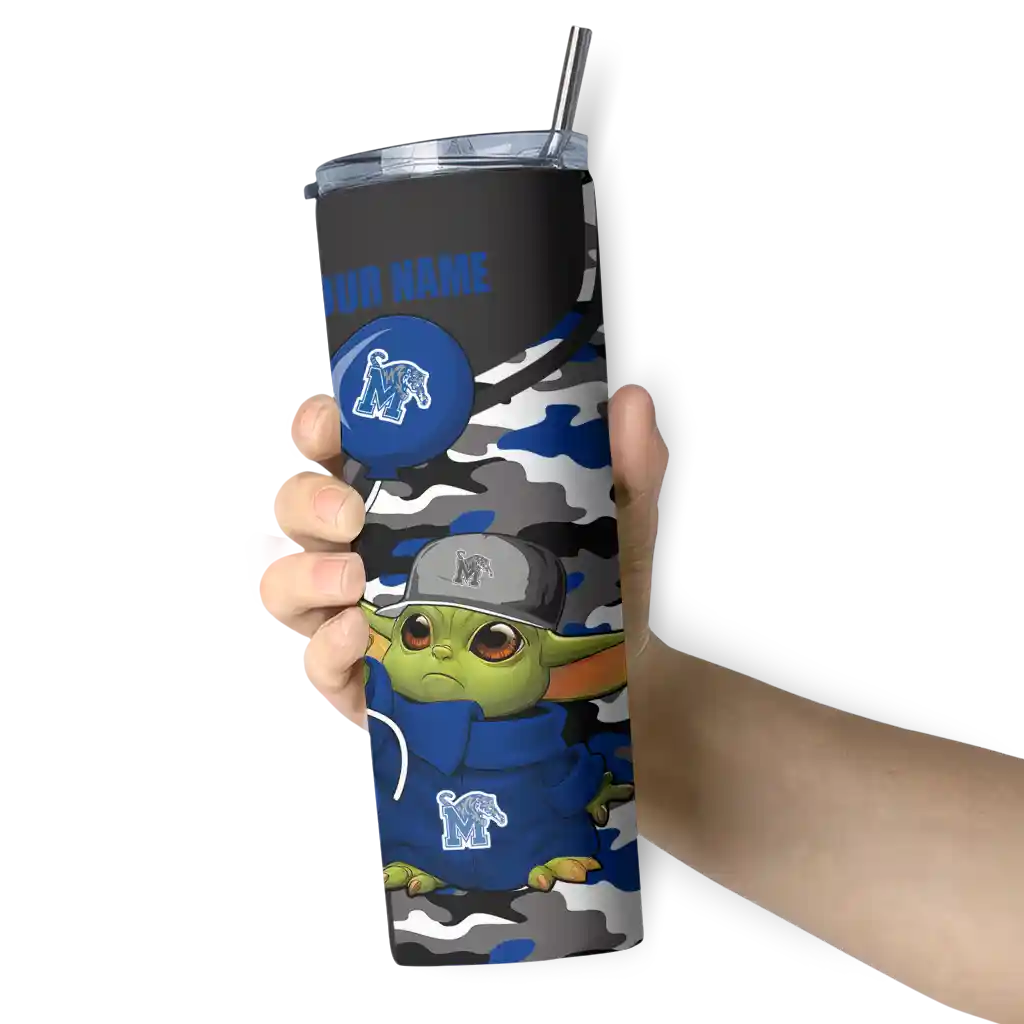 Custom Memphis Tigers Yoda Camo Blue Black Skinny Tumbler