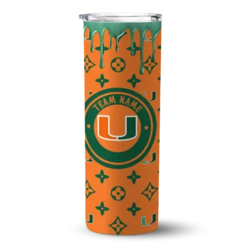 The Custom Miami Hurricanes Star Cluster Orange Skinny Tumbler tumbler is the perfect way to stay refreshed while showing off your pride for Miami Hurricanes. With its double-wall insulation, your drinks stay at the right temperature for hours, whether you're enjoying a hot coffee or keeping your iced drink cold. What's inside? You’ll find 1 stainless steel tumbler, 1 clear lid, and 1 removable straw. It's the perfect blend of function and fan spirit! Ergonomically designed for comfort, made from durable stainless steel, and insulated to maintain your drink’s temperature, this tumbler is a must-have for any dedicated NCAA fan.