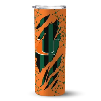 The Personalized Miami Hurricanes Torn Band Orange White Skinny Tumbler tumbler is the perfect way to stay refreshed while showing off your pride for Miami Hurricanes. With its double-wall insulation, your drinks stay at the right temperature for hours, whether you're enjoying a hot coffee or keeping your iced drink cold. What's inside? You’ll find 1 stainless steel tumbler, 1 clear lid, and 1 removable straw. It's the perfect blend of function and fan spirit! Ergonomically designed for comfort, made from durable stainless steel, and insulated to maintain your drink’s temperature, this tumbler is a must-have for any dedicated NCAA fan.