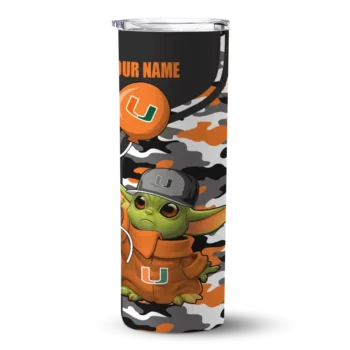 Customized Miami Hurricanes Yoda Camo Orange Black Skinny Tumbler $28.99