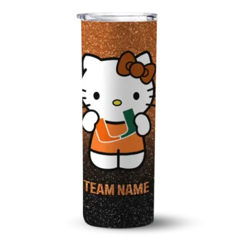 Personalized Miami Hurricanes Hello Kitty Orange Black Skinny Tumbler $28.99
