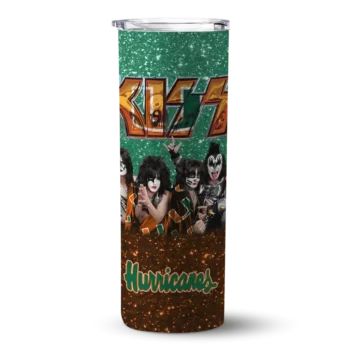 Custom Miami Hurricanes Kiss Band Green Skinny Tumbler $28.99