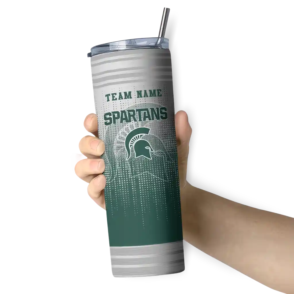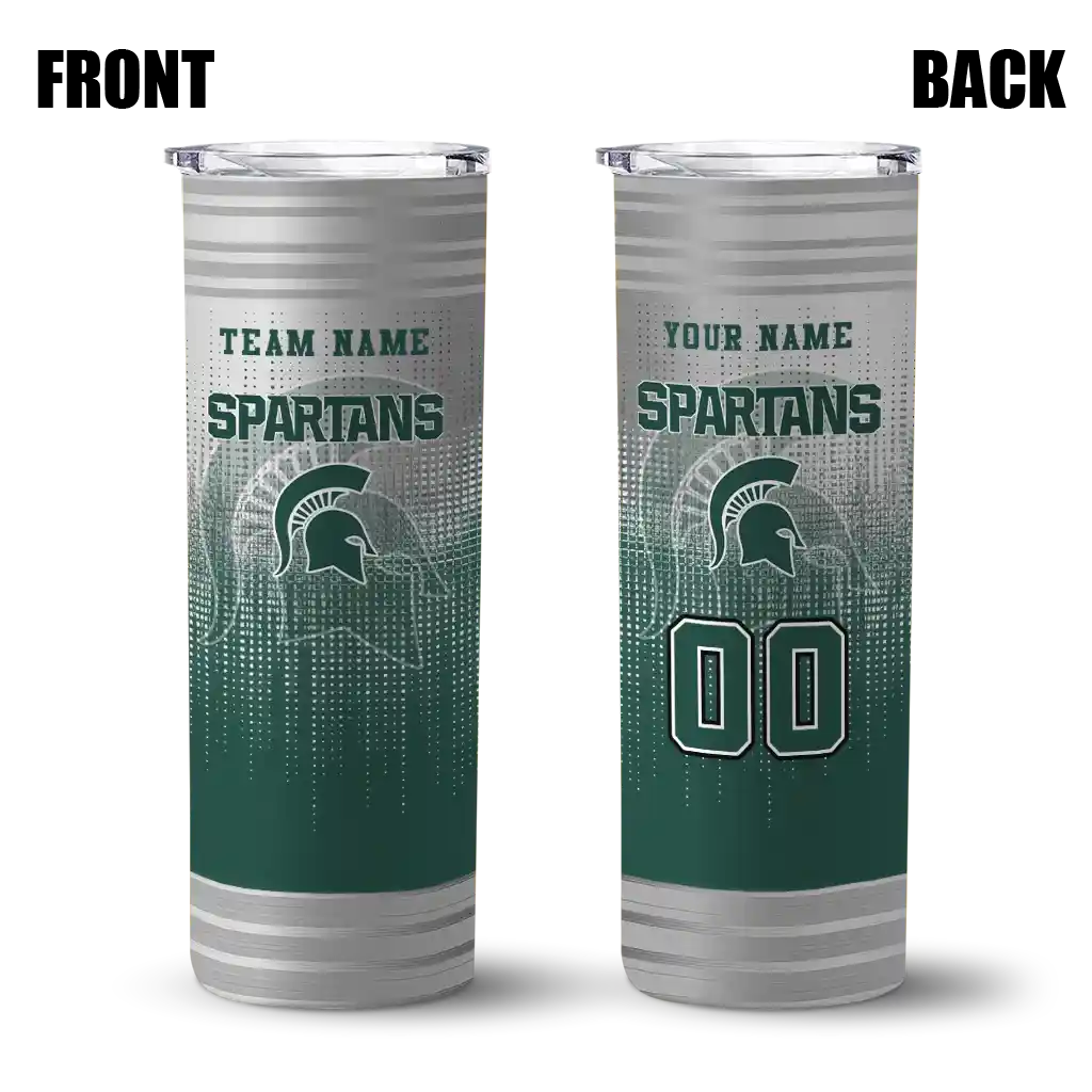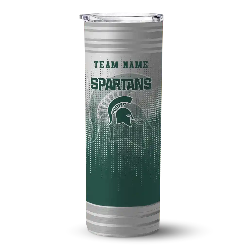 The Custom Michigan State Spartans Swirl Texture Green Skinny Tumbler tumbler is the perfect way to stay refreshed while showing off your pride for Michigan State Spartans. With its double-wall insulation, your drinks stay at the right temperature for hours, whether you're enjoying a hot coffee or keeping your iced drink cold. What's inside? You’ll find 1 stainless steel tumbler, 1 clear lid, and 1 removable straw. It's the perfect blend of function and fan spirit! Ergonomically designed for comfort, made from durable stainless steel, and insulated to maintain your drink’s temperature, this tumbler is a must-have for any dedicated NCAA fan.