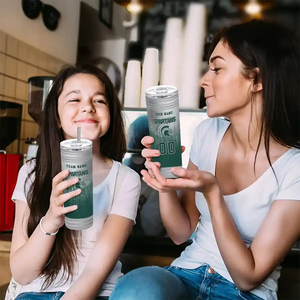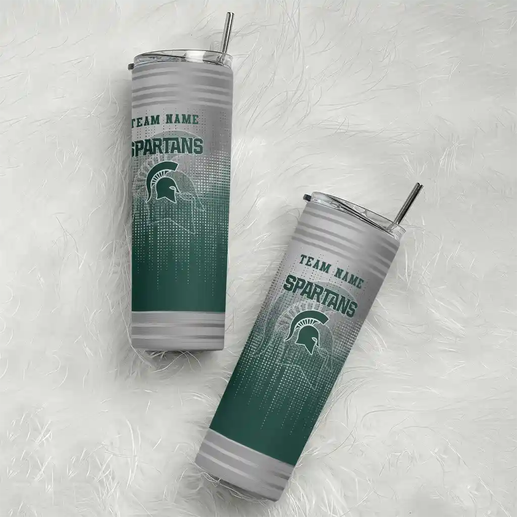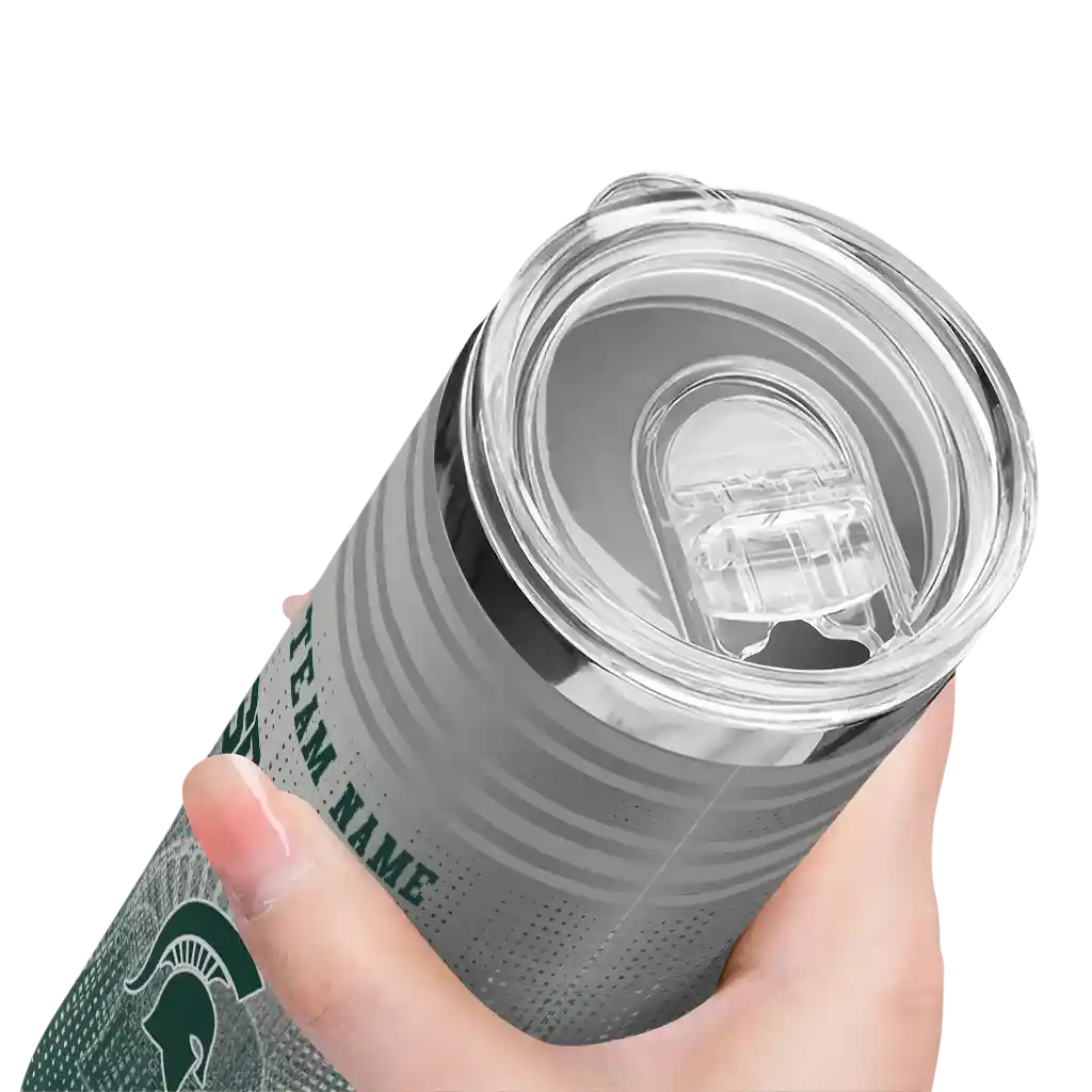 The Custom Michigan State Spartans Swirl Texture Green Skinny Tumbler tumbler is the perfect way to stay refreshed while showing off your pride for Michigan State Spartans. With its double-wall insulation, your drinks stay at the right temperature for hours, whether you're enjoying a hot coffee or keeping your iced drink cold. What's inside? You’ll find 1 stainless steel tumbler, 1 clear lid, and 1 removable straw. It's the perfect blend of function and fan spirit! Ergonomically designed for comfort, made from durable stainless steel, and insulated to maintain your drink’s temperature, this tumbler is a must-have for any dedicated NCAA fan.