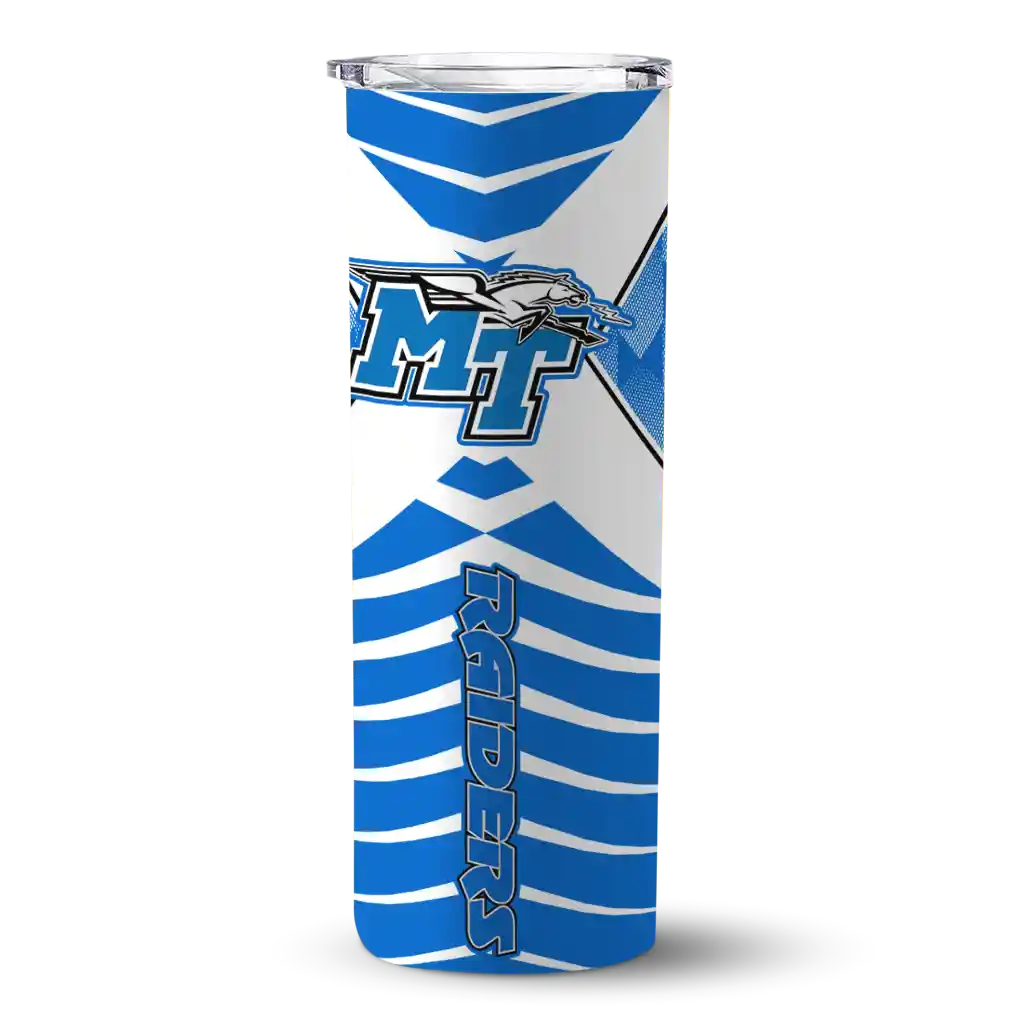 Introducing the Middle Tennessee Blue Raiders Tumblers from NCAA Fan Pro —where fan pride meets practical design. This slim tumbler is created for NCAA fans who want their drinks at the perfect temperature while displaying their school pride. The double-wall insulation ensures your hot beverages stay warm and your cold drinks stay chilled for hours, so you can enjoy your drinks at their best, whether you're at a game, tailgate, or on the go.