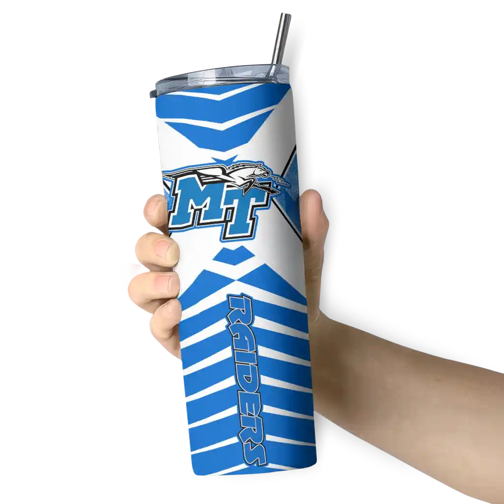 Made from premium stainless steel, this tumbler is built to last. The bold Middle Tennessee Blue Raiders logo proudly represents your team, while the ergonomic design fits comfortably in your hand for easy carrying. Whether you're cheering in the stands, catching up with friends, or just out and about, this tumbler is the perfect fan accessory, combining style and function to keep you hydrated in true NCAA spirit.