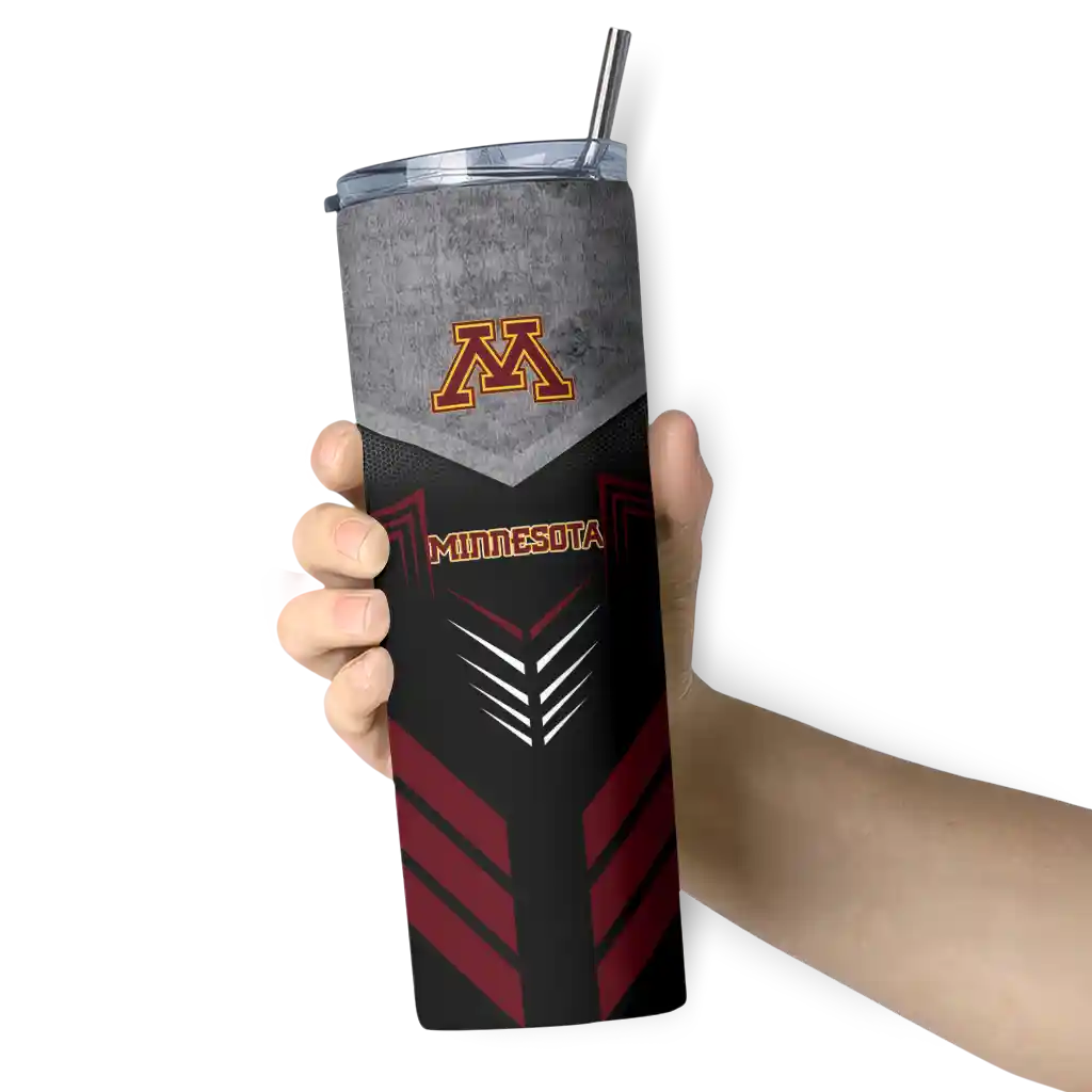 Made from premium stainless steel, this tumbler is built to last. The bold Minnesota Golden Gophers logo proudly represents your team, while the ergonomic design fits comfortably in your hand for easy carrying. Whether you're cheering in the stands, catching up with friends, or just out and about, this tumbler is the perfect fan accessory, combining style and function to keep you hydrated in true NCAA spirit.