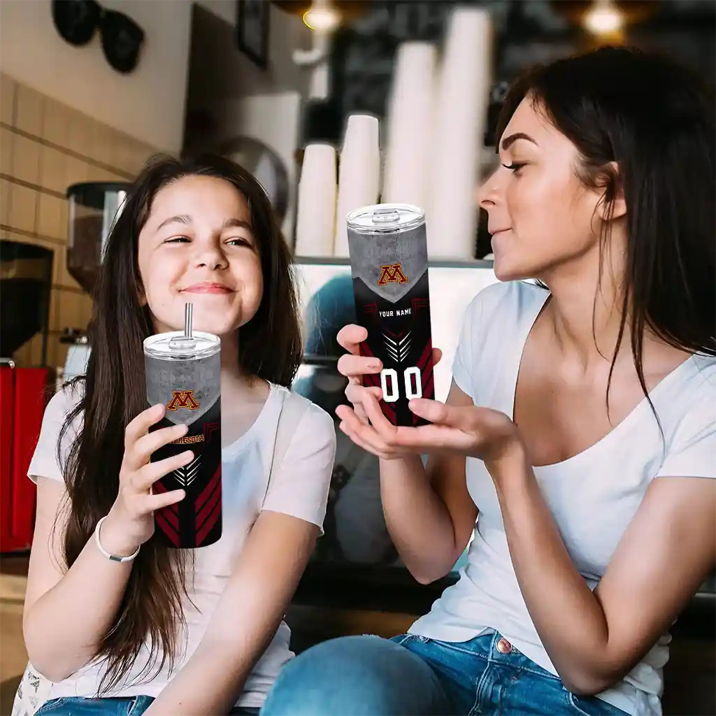 The Customized Minnesota Golden Gophers Starburst Tiles Maroon Skinny Tumbler tumbler is the perfect way to stay refreshed while showing off your pride for Minnesota Golden Gophers. With its double-wall insulation, your drinks stay at the right temperature for hours, whether you're enjoying a hot coffee or keeping your iced drink cold. What's inside? You’ll find 1 stainless steel tumbler, 1 clear lid, and 1 removable straw. It's the perfect blend of function and fan spirit! Ergonomically designed for comfort, made from durable stainless steel, and insulated to maintain your drink’s temperature, this tumbler is a must-have for any dedicated NCAA fan.