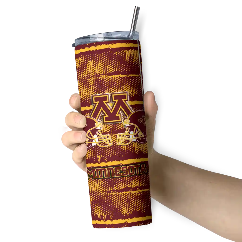 Made from premium stainless steel, this tumbler is built to last. The bold Minnesota Golden Gophers logo proudly represents your team, while the ergonomic design fits comfortably in your hand for easy carrying. Whether you're cheering in the stands, catching up with friends, or just out and about, this tumbler is the perfect fan accessory, combining style and function to keep you hydrated in true NCAA spirit.
