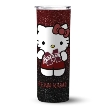 Personalized Mississippi State Bulldogs Hello Kitty Maroon Black Skinny Tumbler $28.99