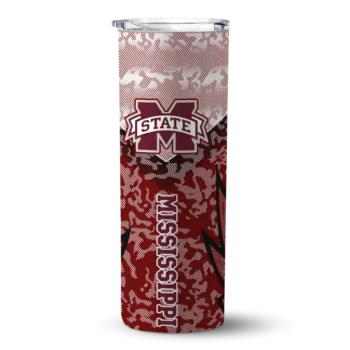 The Customized Mississippi State Bulldogs Chevron Stripes Maroon Skinny Tumbler tumbler is the perfect way to stay refreshed while showing off your pride for Mississippi State Bulldogs. With its double-wall insulation, your drinks stay at the right temperature for hours, whether you're enjoying a hot coffee or keeping your iced drink cold. What's inside? You’ll find 1 stainless steel tumbler, 1 clear lid, and 1 removable straw. It's the perfect blend of function and fan spirit! Ergonomically designed for comfort, made from durable stainless steel, and insulated to maintain your drink’s temperature, this tumbler is a must-have for any dedicated NCAA fan.