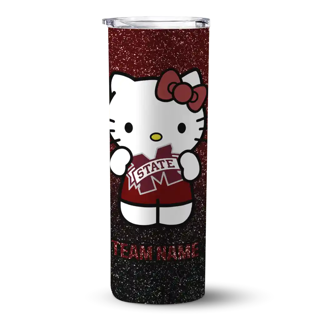 Personalized Mississippi State Bulldogs Hello Kitty Maroon Black Skinny Tumbler