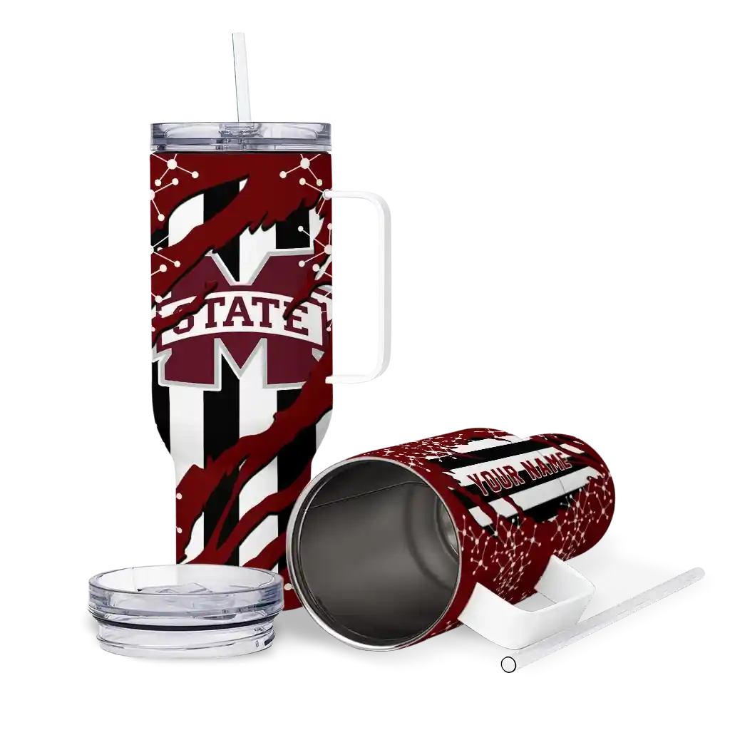 Say hello to the Mississippi State Bulldogs Tumblers from NCAA Fan Pro —the perfect tumbler for diehard Mississippi State Bulldogs fans who want more than just a drink container. Built from durable stainless steel with sleek rounded corners, this tumbler isn't just about keeping your drink at the right temperature—it’s built to last and show off your team spirit. The generous 40oz size makes it the perfect match for long games, tailgates, or any adventure where hydration is key.