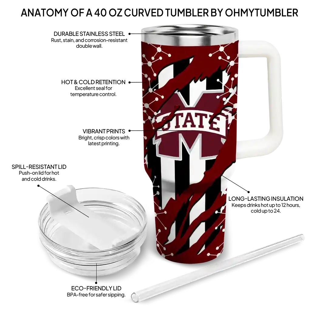 Custom Mississippi State Bulldogs Claw Cut Maroon Black Curved Tumbler