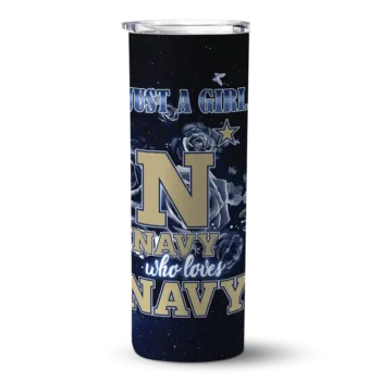 Customized Navy Midshipmen Rose Romance Blue Black Skinny Tumbler $28.99