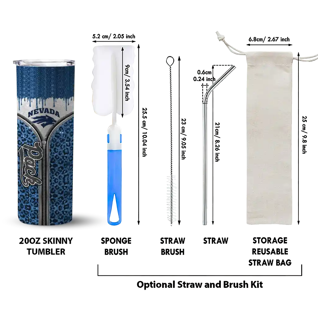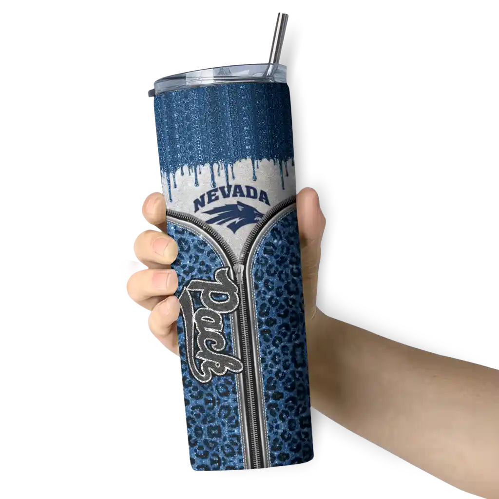 The Custom Nevada Wolf Pack Sparkle Drip Blue Skinny Tumbler tumbler is the perfect way to stay refreshed while showing off your pride for Nevada Wolf Pack. With its double-wall insulation, your drinks stay at the right temperature for hours, whether you're enjoying a hot coffee or keeping your iced drink cold. What's inside? You’ll find 1 stainless steel tumbler, 1 clear lid, and 1 removable straw. It's the perfect blend of function and fan spirit! Ergonomically designed for comfort, made from durable stainless steel, and insulated to maintain your drink’s temperature, this tumbler is a must-have for any dedicated NCAA fan.