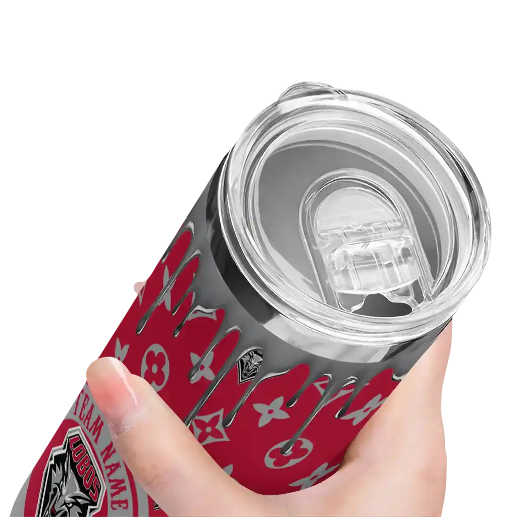 The Custom New Mexico Lobos Camo Streak Red Skinny Tumbler tumbler is the perfect way to stay refreshed while showing off your pride for New Mexico Lobos. With its double-wall insulation, your drinks stay at the right temperature for hours, whether you're enjoying a hot coffee or keeping your iced drink cold. What's inside? You’ll find 1 stainless steel tumbler, 1 clear lid, and 1 removable straw. It's the perfect blend of function and fan spirit! Ergonomically designed for comfort, made from durable stainless steel, and insulated to maintain your drink’s temperature, this tumbler is a must-have for any dedicated NCAA fan.