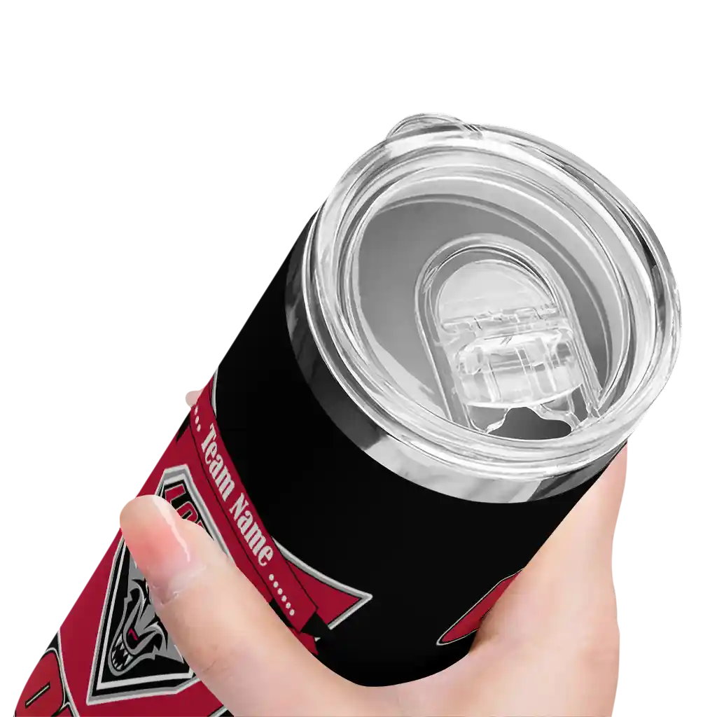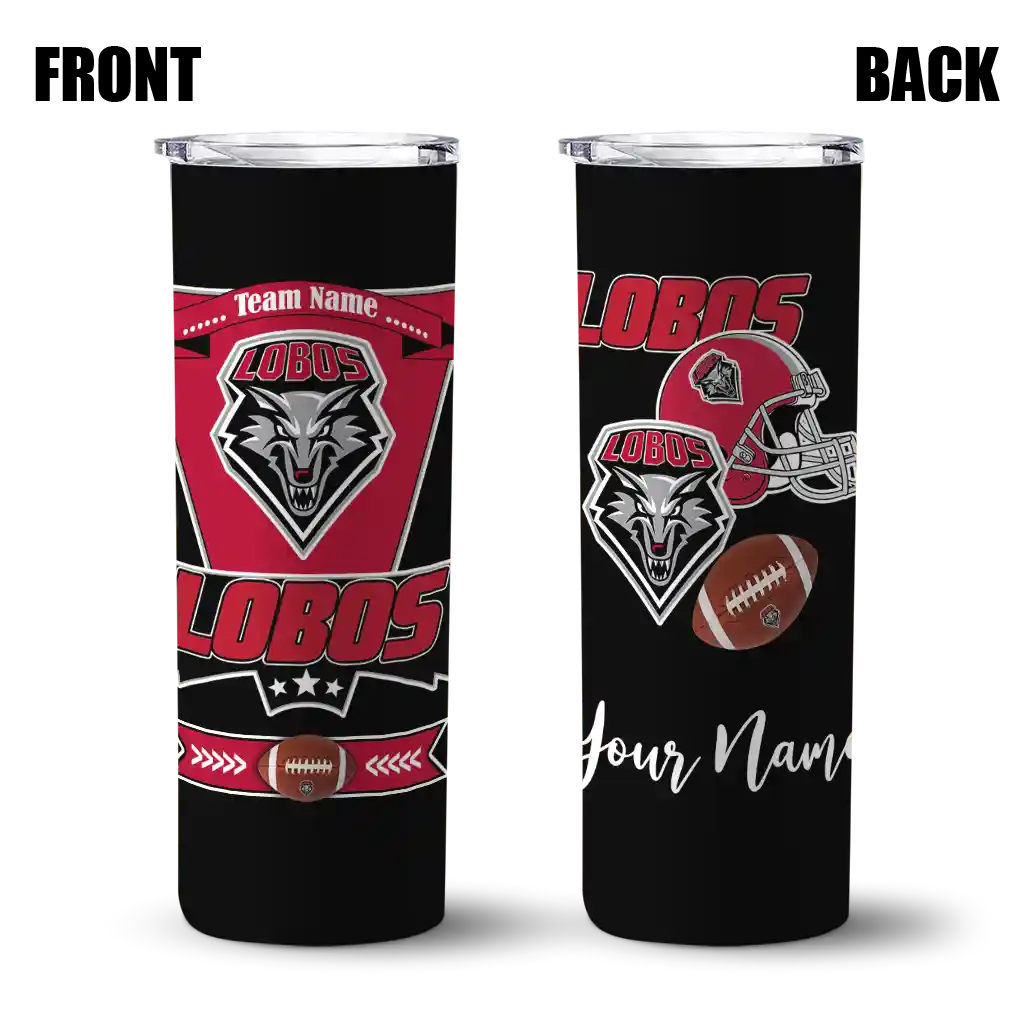 The Customized New Mexico Lobos Helmet Belt Red Black Skinny Tumbler tumbler is the perfect way to stay refreshed while showing off your pride for New Mexico Lobos. With its double-wall insulation, your drinks stay at the right temperature for hours, whether you're enjoying a hot coffee or keeping your iced drink cold. What's inside? You’ll find 1 stainless steel tumbler, 1 clear lid, and 1 removable straw. It's the perfect blend of function and fan spirit! Ergonomically designed for comfort, made from durable stainless steel, and insulated to maintain your drink’s temperature, this tumbler is a must-have for any dedicated NCAA fan.