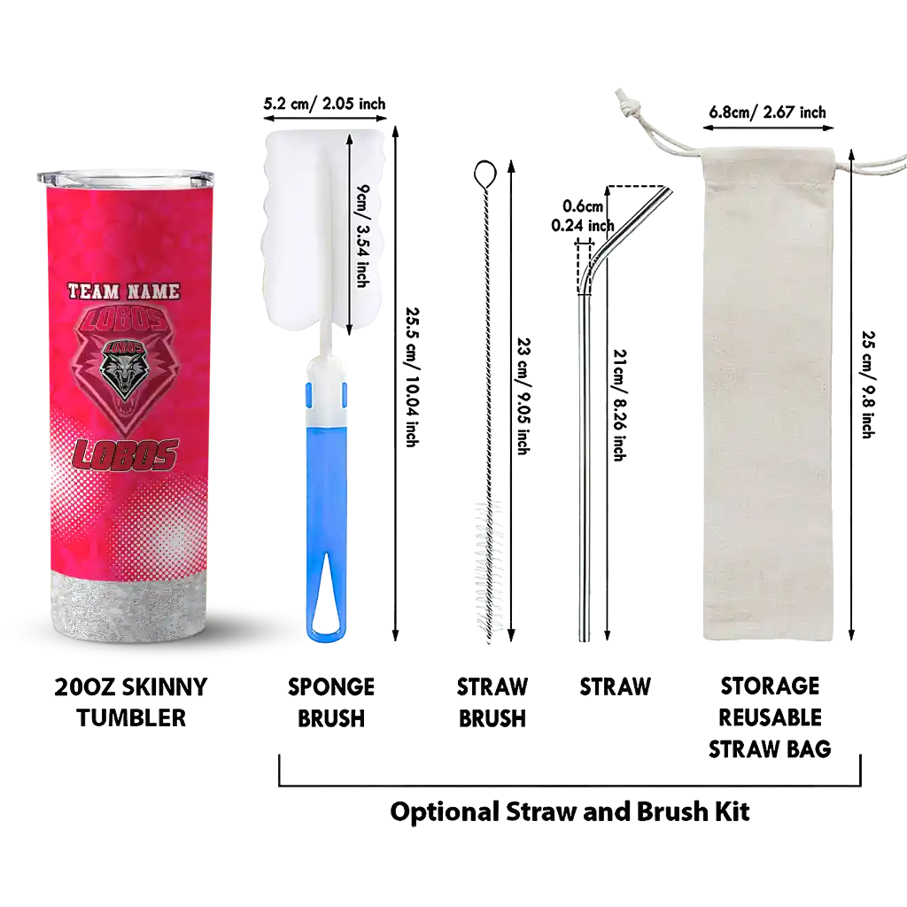 The Personalized New Mexico Lobos Torn Band Red White Skinny Tumbler tumbler is the perfect way to stay refreshed while showing off your pride for New Mexico Lobos. With its double-wall insulation, your drinks stay at the right temperature for hours, whether you're enjoying a hot coffee or keeping your iced drink cold. What's inside? You’ll find 1 stainless steel tumbler, 1 clear lid, and 1 removable straw. It's the perfect blend of function and fan spirit! Ergonomically designed for comfort, made from durable stainless steel, and insulated to maintain your drink’s temperature, this tumbler is a must-have for any dedicated NCAA fan.