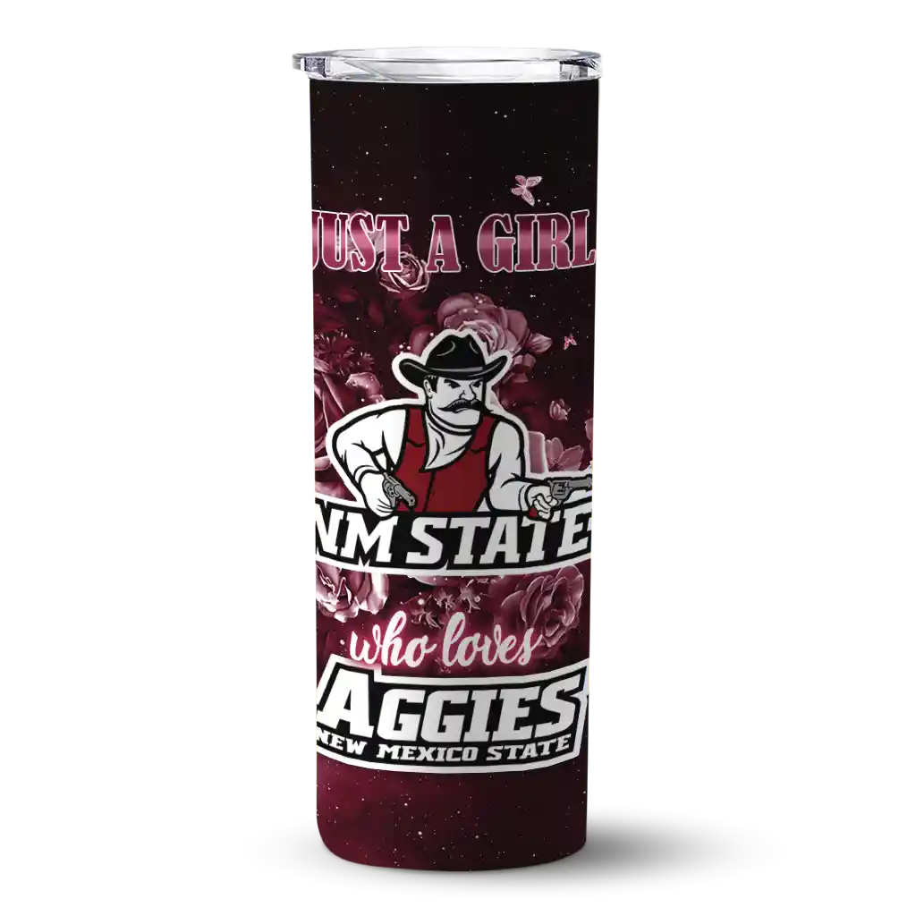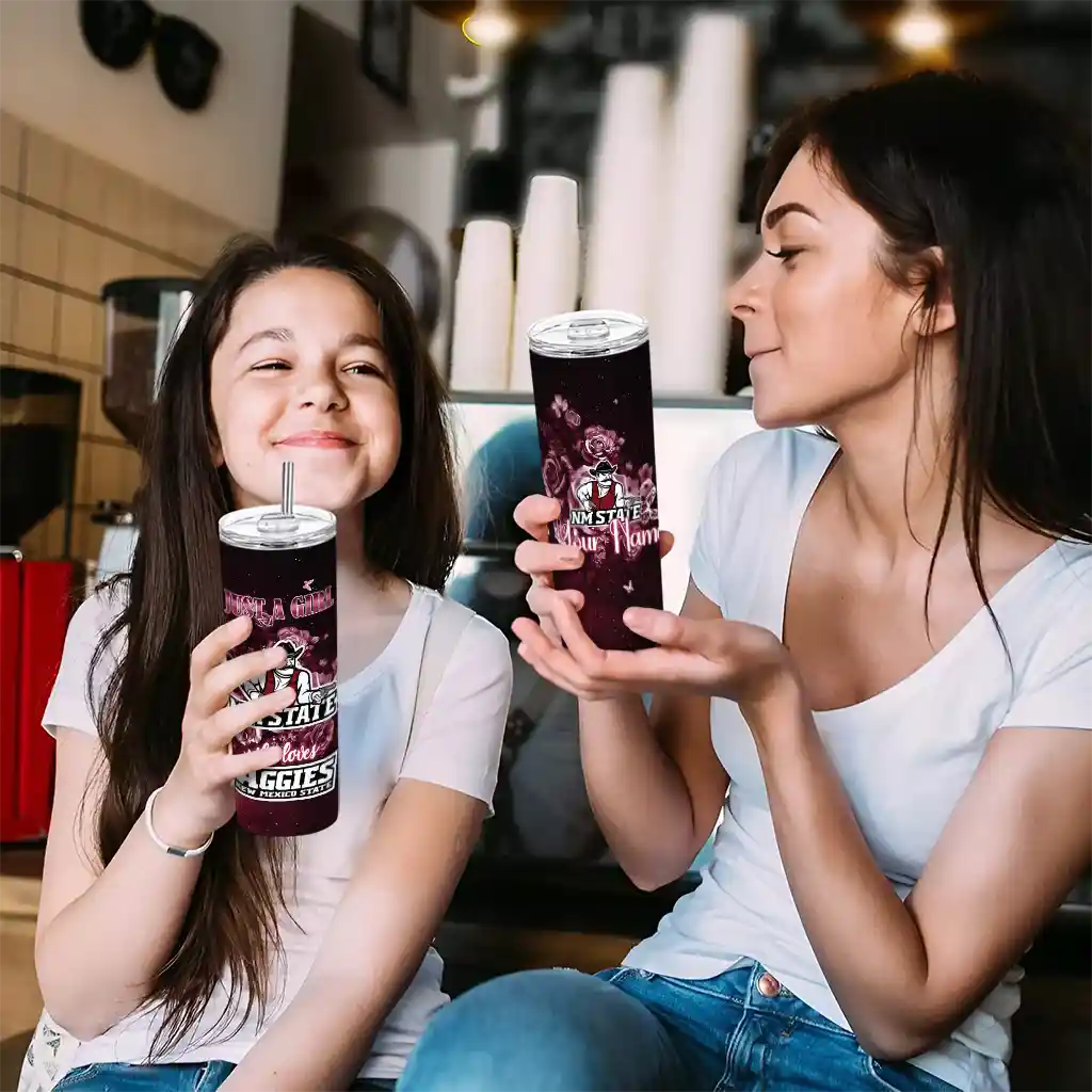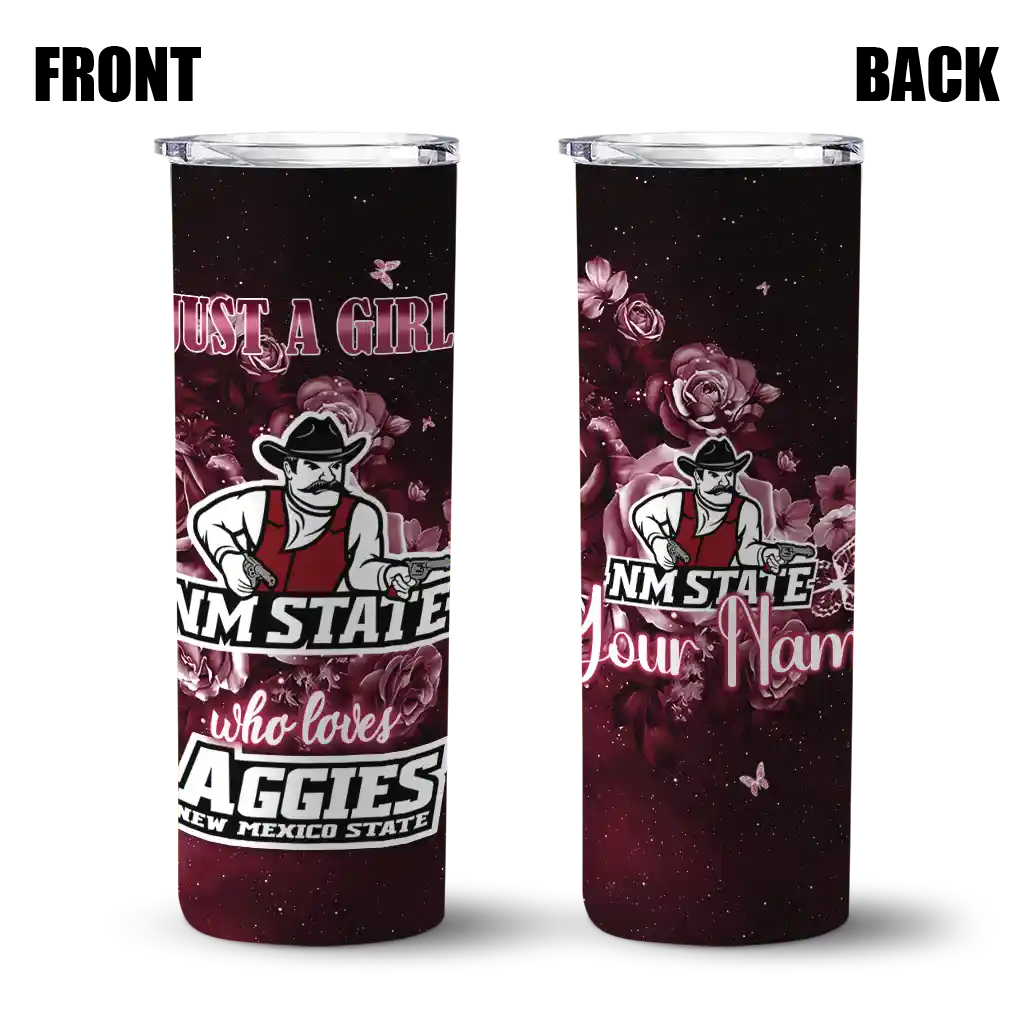 Custom New Mexico State Aggies Rose Romance Crimson Black Skinny Tumbler