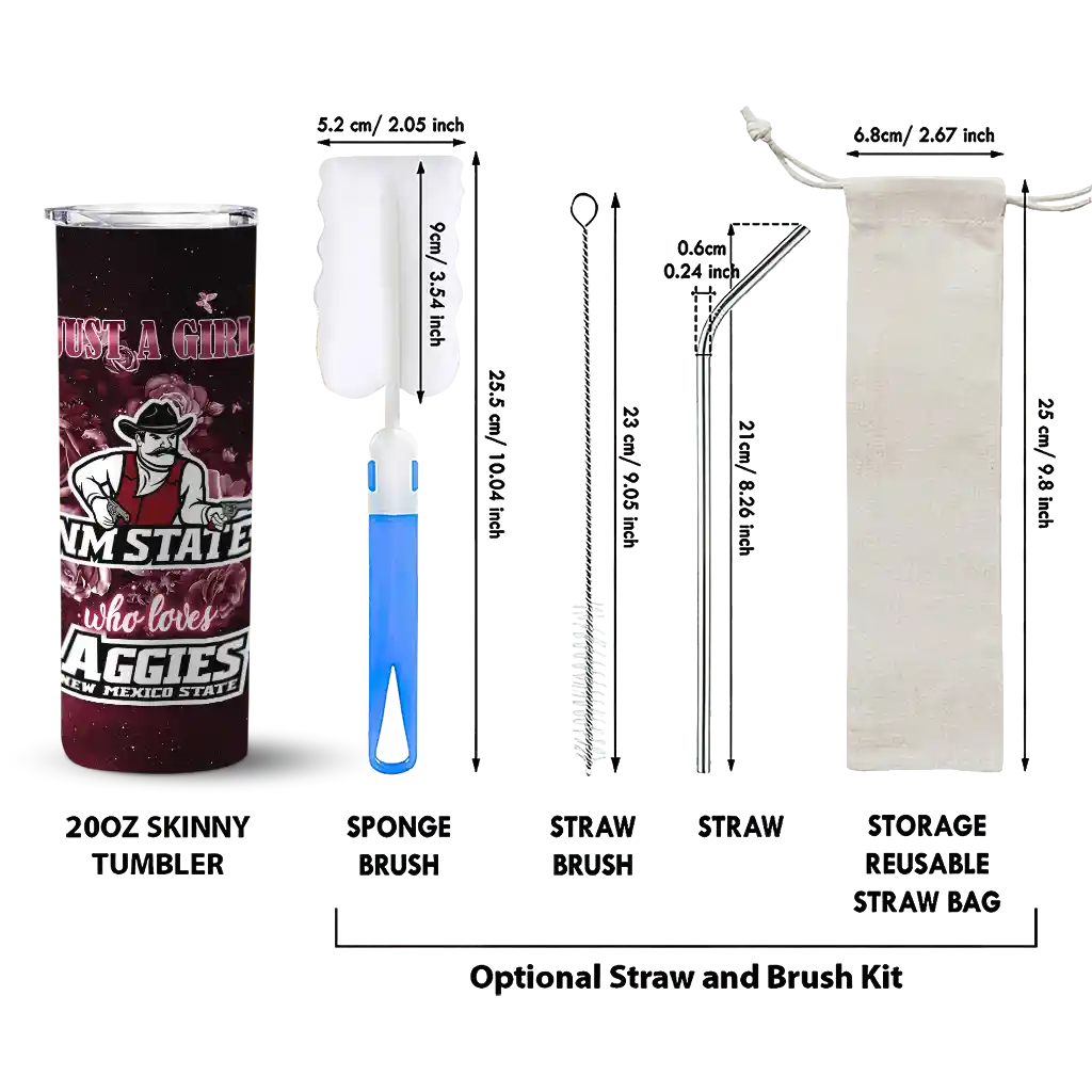 The Custom New Mexico State Aggies Rose Romance Crimson Black Skinny Tumbler tumbler is the perfect way to stay refreshed while showing off your pride for New Mexico State Aggies. With its double-wall insulation, your drinks stay at the right temperature for hours, whether you're enjoying a hot coffee or keeping your iced drink cold. What's inside? You’ll find 1 stainless steel tumbler, 1 clear lid, and 1 removable straw. It's the perfect blend of function and fan spirit! Ergonomically designed for comfort, made from durable stainless steel, and insulated to maintain your drink’s temperature, this tumbler is a must-have for any dedicated NCAA fan.