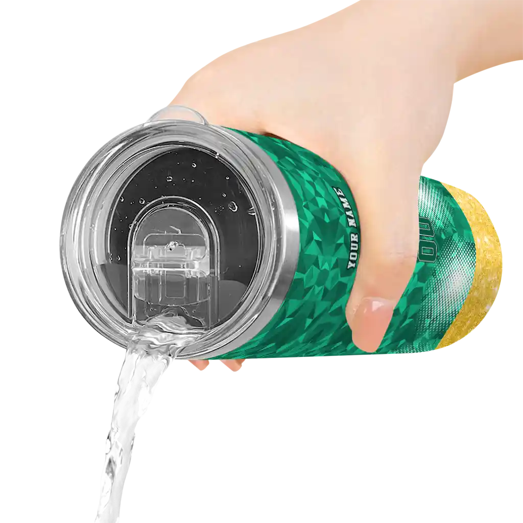 No question about it—the Custom North Dakota State Bison Chevron Angle Green Curved Tumbler is the ultimate way to stay refreshed while rocking your North Dakota State Bison pride. From the stadium to your tailgate, or just chilling at home, this sleek tumbler makes sure you stay hydrated in style. What’s in the box? A stainless steel tumbler, clear lid, and removable straw—all the essentials for keeping your favorite drinks on point!