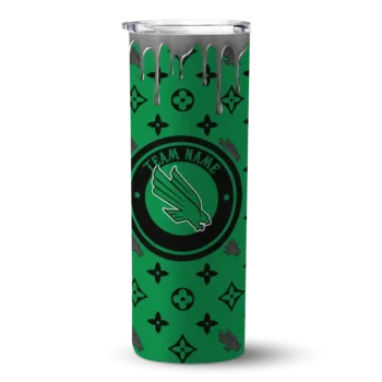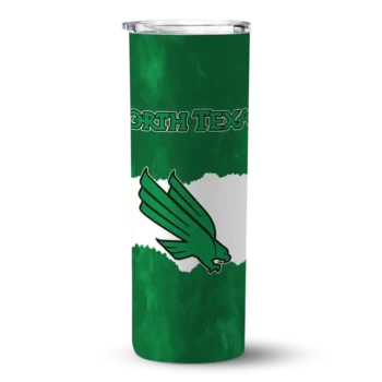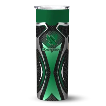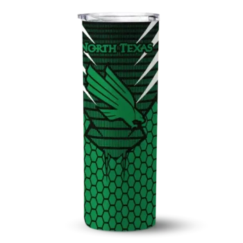 The Customized North Texas Mean Green Patterned Waves Green Skinny Tumbler tumbler is the perfect way to stay refreshed while showing off your pride for North Texas Mean Green. With its double-wall insulation, your drinks stay at the right temperature for hours, whether you're enjoying a hot coffee or keeping your iced drink cold. What's inside? You’ll find 1 stainless steel tumbler, 1 clear lid, and 1 removable straw. It's the perfect blend of function and fan spirit! Ergonomically designed for comfort, made from durable stainless steel, and insulated to maintain your drink’s temperature, this tumbler is a must-have for any dedicated NCAA fan.