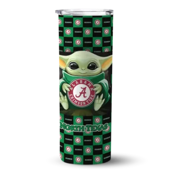 The Custom North Texas Mean Green Yoda Cozy Green Black Skinny Tumbler tumbler is the perfect way to stay refreshed while showing off your pride for North Texas Mean Green. With its double-wall insulation, your drinks stay at the right temperature for hours, whether you're enjoying a hot coffee or keeping your iced drink cold. What's inside? You’ll find 1 stainless steel tumbler, 1 clear lid, and 1 removable straw. It's the perfect blend of function and fan spirit! Ergonomically designed for comfort, made from durable stainless steel, and insulated to maintain your drink’s temperature, this tumbler is a must-have for any dedicated NCAA fan.