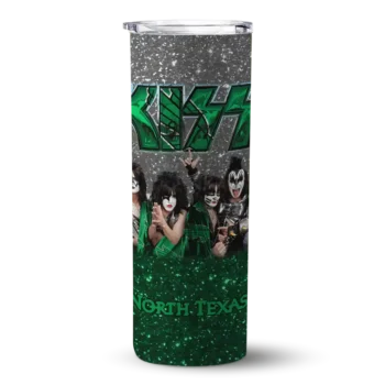 Customized North Texas Mean Green Kiss Band Black Skinny Tumbler $28.99