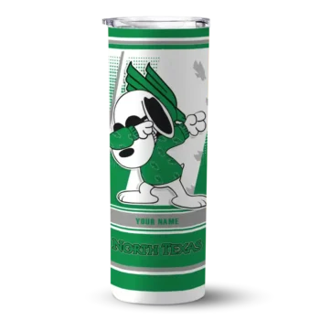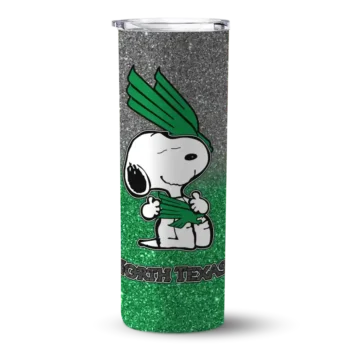 The Personalized North Texas Mean Green Snoopy Dog Green White Skinny Tumbler tumbler is the perfect way to stay refreshed while showing off your pride for North Texas Mean Green. With its double-wall insulation, your drinks stay at the right temperature for hours, whether you're enjoying a hot coffee or keeping your iced drink cold. What's inside? You’ll find 1 stainless steel tumbler, 1 clear lid, and 1 removable straw. It's the perfect blend of function and fan spirit! Ergonomically designed for comfort, made from durable stainless steel, and insulated to maintain your drink’s temperature, this tumbler is a must-have for any dedicated NCAA fan.