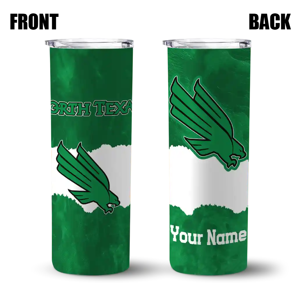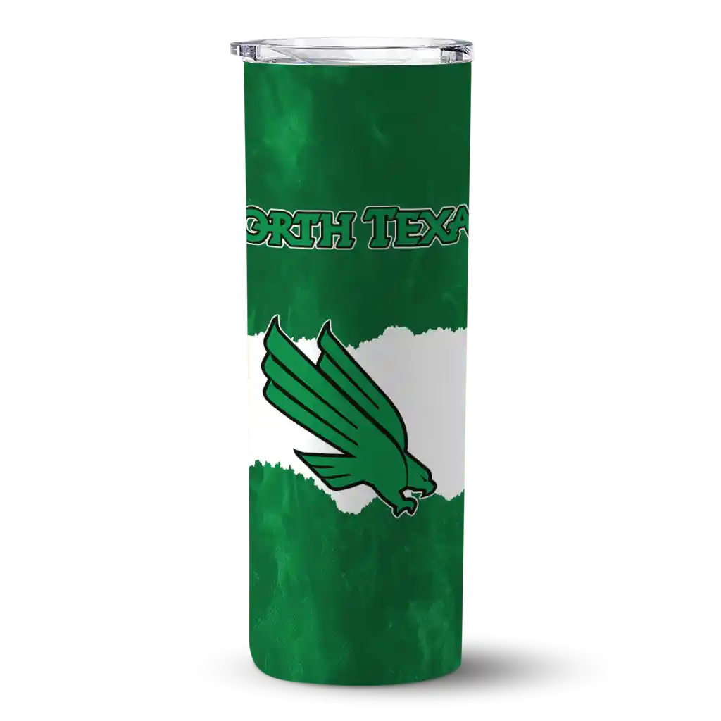 The Custom North Texas Mean Green Torn Band Green White Skinny Tumbler tumbler is the perfect way to stay refreshed while showing off your pride for North Texas Mean Green. With its double-wall insulation, your drinks stay at the right temperature for hours, whether you're enjoying a hot coffee or keeping your iced drink cold. What's inside? You’ll find 1 stainless steel tumbler, 1 clear lid, and 1 removable straw. It's the perfect blend of function and fan spirit! Ergonomically designed for comfort, made from durable stainless steel, and insulated to maintain your drink’s temperature, this tumbler is a must-have for any dedicated NCAA fan.
