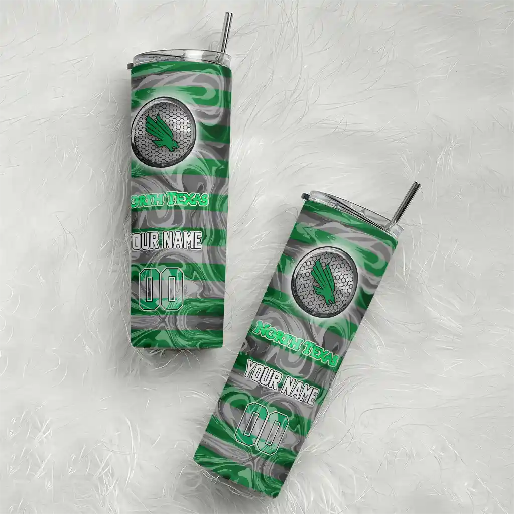 Customized North Texas Mean Green Patterned Waves Green Skinny Tumbler