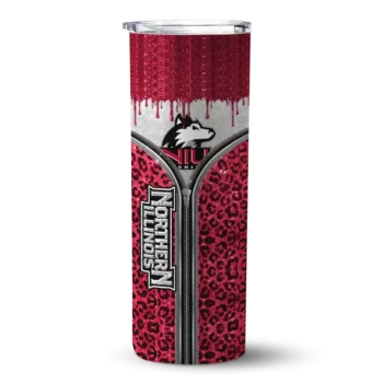 • Custom Northern Illinois Huskies Leopard Zipper Red Curved Tumbler $39.99