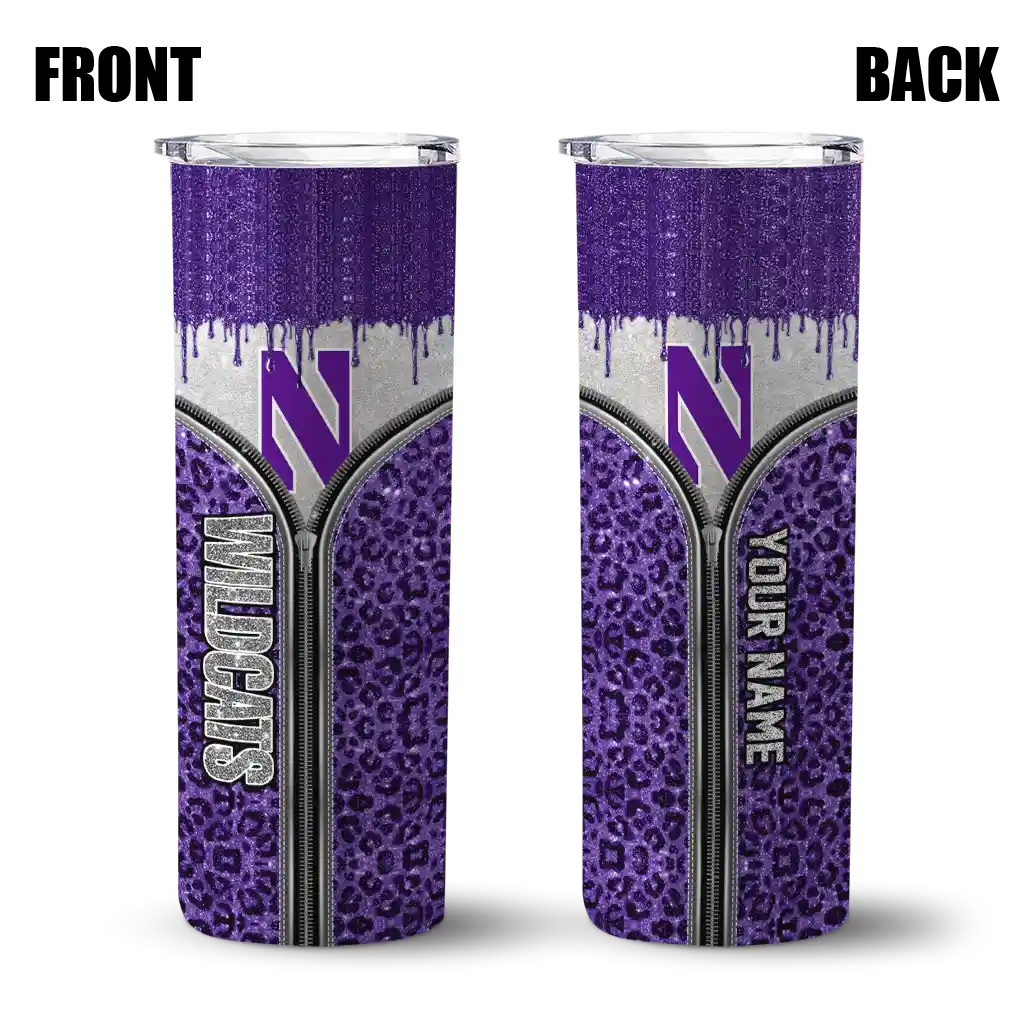 Customized Northwestern Wildcats Sparkle Drip Purple Skinny Tumbler