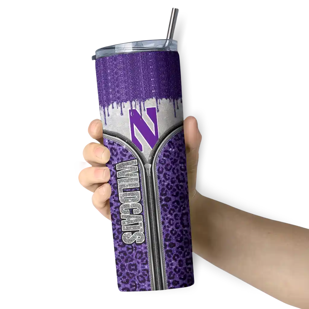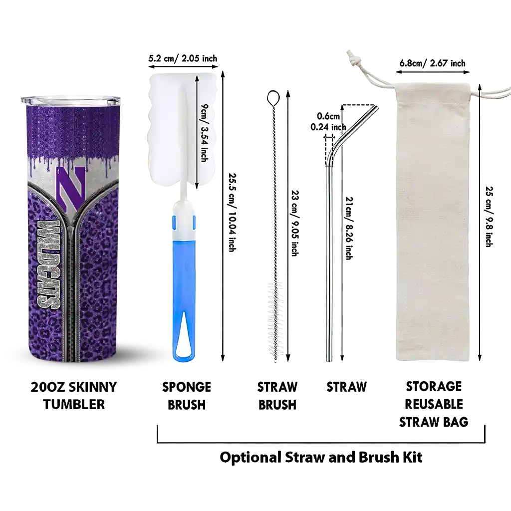The Customized Northwestern Wildcats Sparkle Drip Purple Skinny Tumbler tumbler is the perfect way to stay refreshed while showing off your pride for Northwestern Wildcats. With its double-wall insulation, your drinks stay at the right temperature for hours, whether you're enjoying a hot coffee or keeping your iced drink cold. What's inside? You’ll find 1 stainless steel tumbler, 1 clear lid, and 1 removable straw. It's the perfect blend of function and fan spirit! Ergonomically designed for comfort, made from durable stainless steel, and insulated to maintain your drink’s temperature, this tumbler is a must-have for any dedicated NCAA fan.