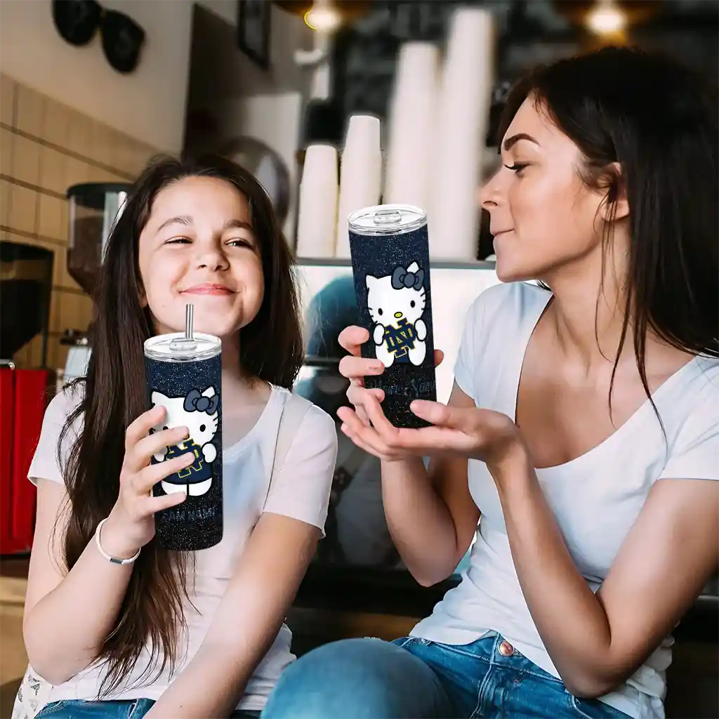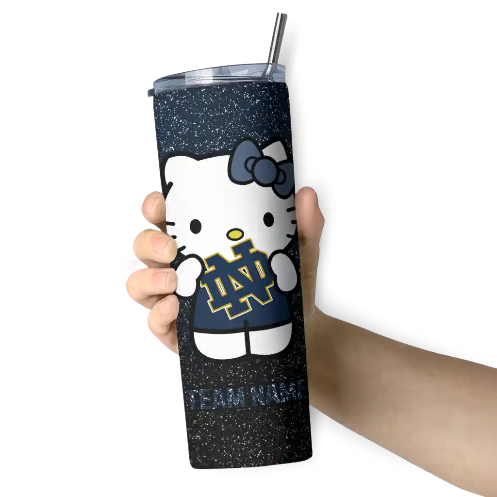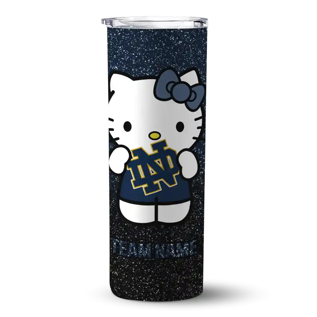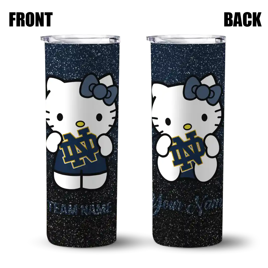The Custom Notre Dame Fighting Irish Hello Kitty Navy Black Skinny Tumbler tumbler is the perfect way to stay refreshed while showing off your pride for Notre Dame Fighting Irish. With its double-wall insulation, your drinks stay at the right temperature for hours, whether you're enjoying a hot coffee or keeping your iced drink cold. What's inside? You’ll find 1 stainless steel tumbler, 1 clear lid, and 1 removable straw. It's the perfect blend of function and fan spirit! Ergonomically designed for comfort, made from durable stainless steel, and insulated to maintain your drink’s temperature, this tumbler is a must-have for any dedicated NCAA fan.