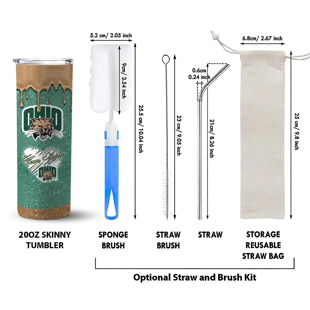 The Customized Ohio Bobcats Pixel Fade Green Skinny Tumbler tumbler is the perfect way to stay refreshed while showing off your pride for Ohio Bobcats. With its double-wall insulation, your drinks stay at the right temperature for hours, whether you're enjoying a hot coffee or keeping your iced drink cold. What's inside? You’ll find 1 stainless steel tumbler, 1 clear lid, and 1 removable straw. It's the perfect blend of function and fan spirit! Ergonomically designed for comfort, made from durable stainless steel, and insulated to maintain your drink’s temperature, this tumbler is a must-have for any dedicated NCAA fan.