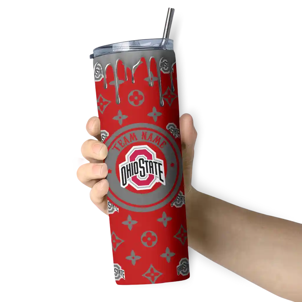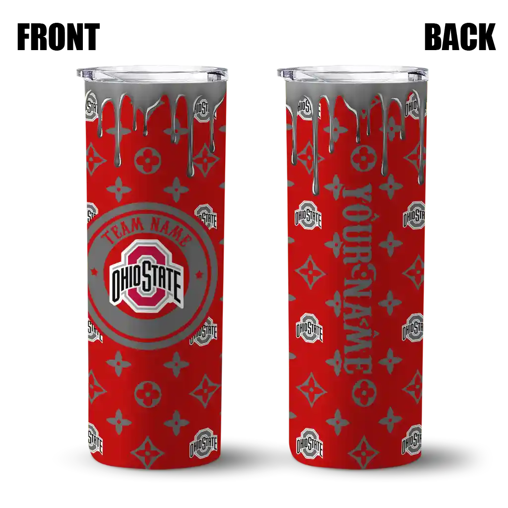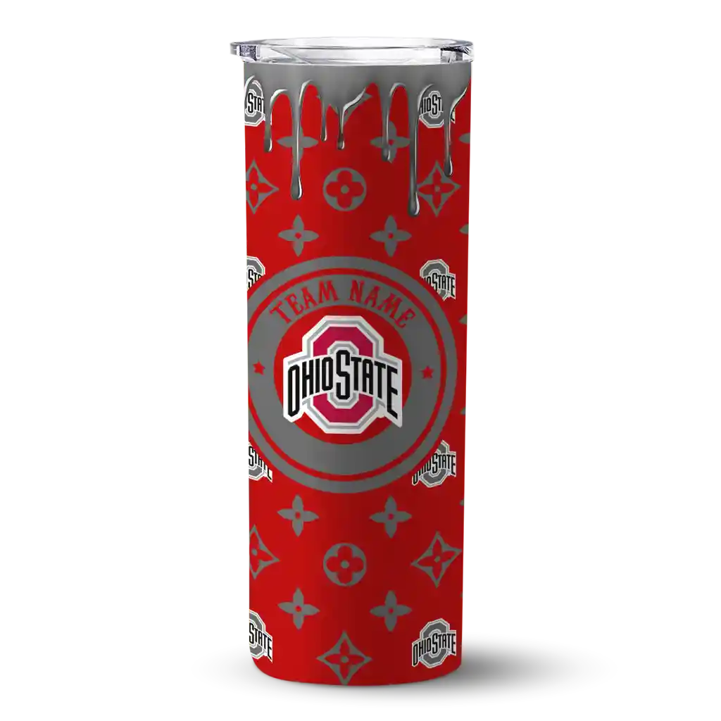 The Customized Ohio State Buckeyes Metallic Grid Scarlet Skinny Tumbler tumbler is the perfect way to stay refreshed while showing off your pride for Ohio State Buckeyes. With its double-wall insulation, your drinks stay at the right temperature for hours, whether you're enjoying a hot coffee or keeping your iced drink cold. What's inside? You’ll find 1 stainless steel tumbler, 1 clear lid, and 1 removable straw. It's the perfect blend of function and fan spirit! Ergonomically designed for comfort, made from durable stainless steel, and insulated to maintain your drink’s temperature, this tumbler is a must-have for any dedicated NCAA fan.